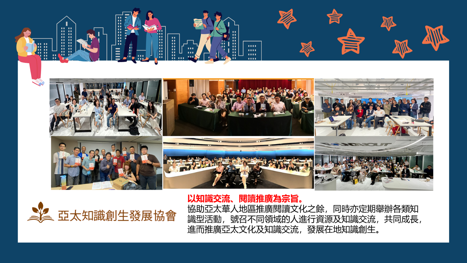 以知識交流、閱讀推廣為宗旨。協助亞太華人地區推廣閱讀文化之餘,同時亦定期舉辦各類知識型活動,號召不同領域的人進行資源及知識交流,共同成長,進而推廣亞太文化及知識交流,發展在地知識創生。