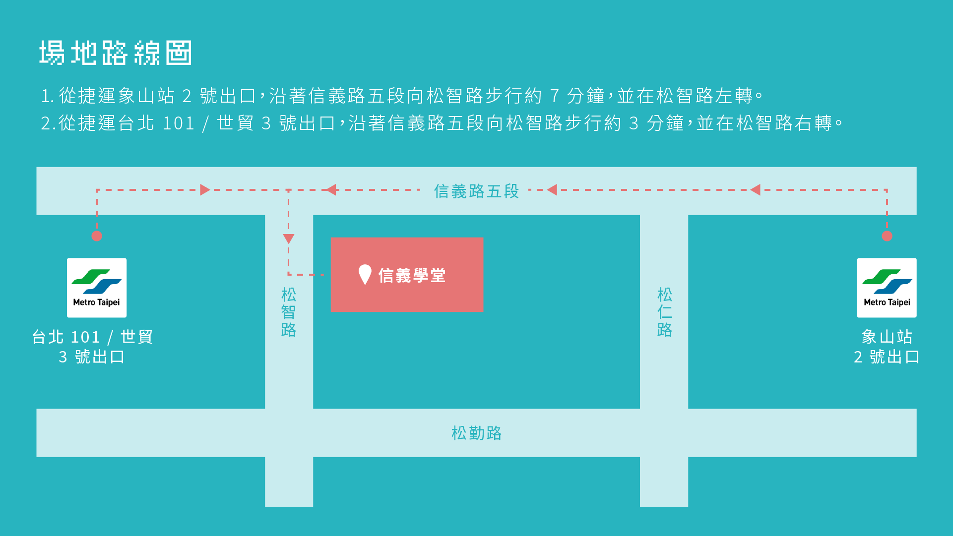 - 地點:信義學堂(台北市信義區信義路五段 100 號 B1 樓)