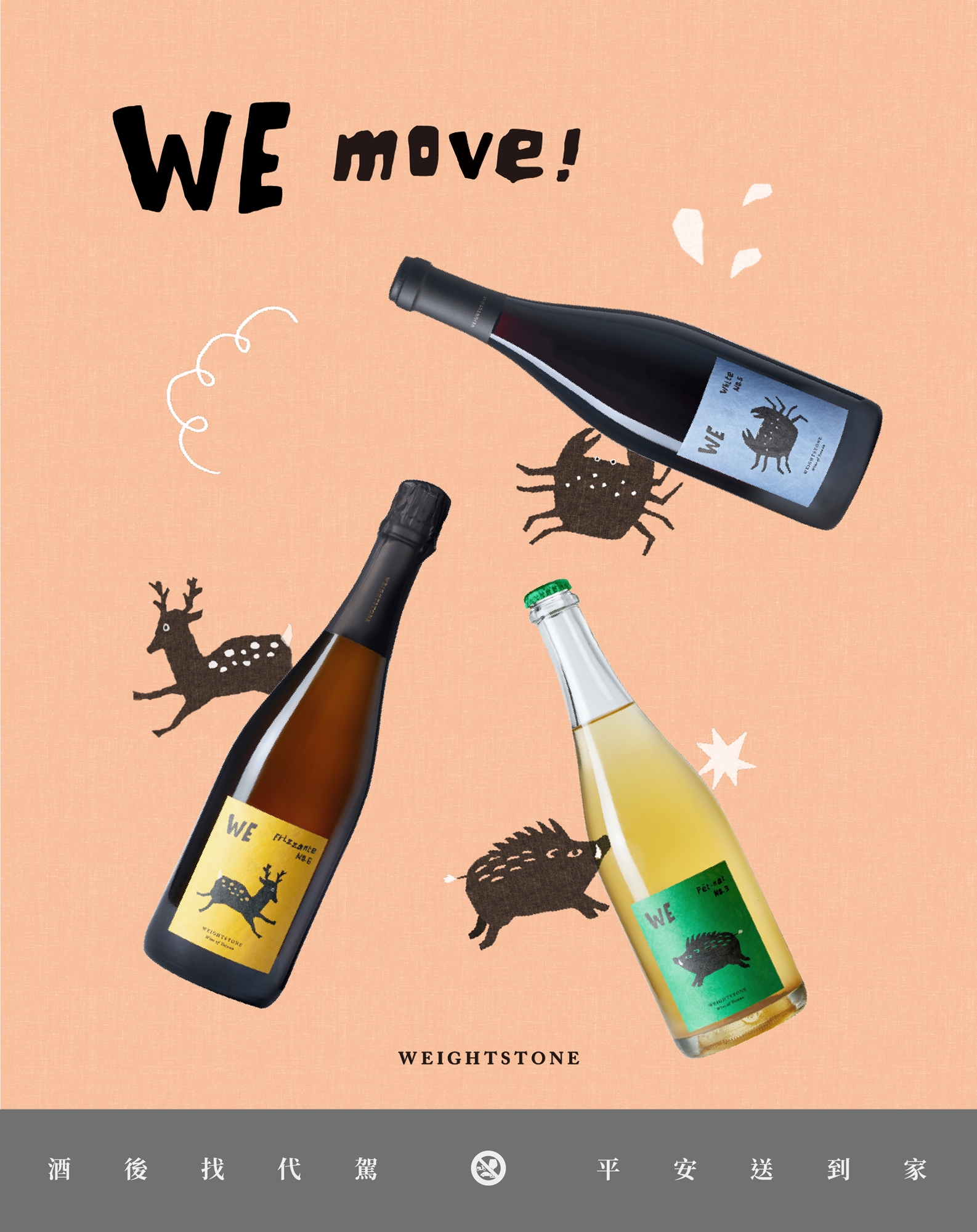0km ⨉ 威石東 攜手推出的 「季節新酒品飲 WE MOVE」,每瓶葡萄酒都是土地與時間的結晶。