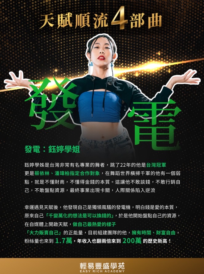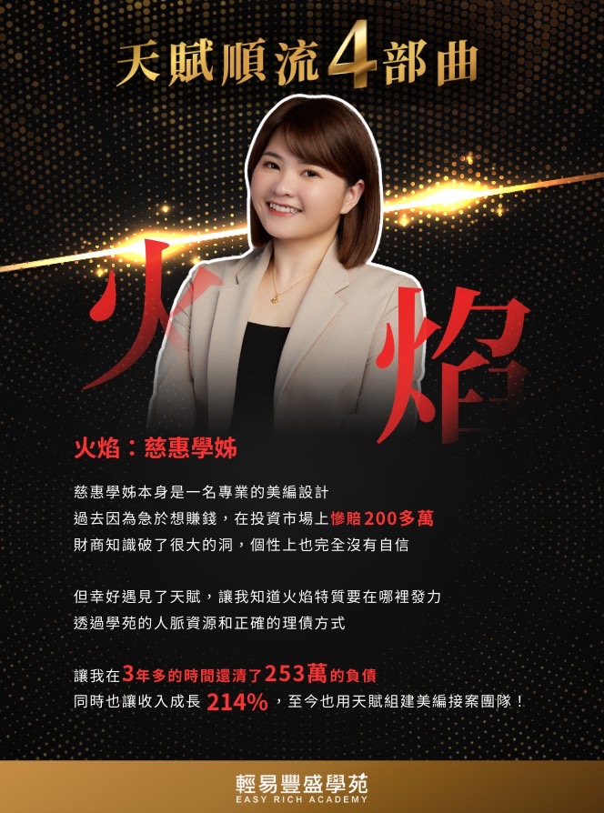 更重要的是天賦不僅僅改變我的人生也幫助我許多學員翻轉人生、順流致富!