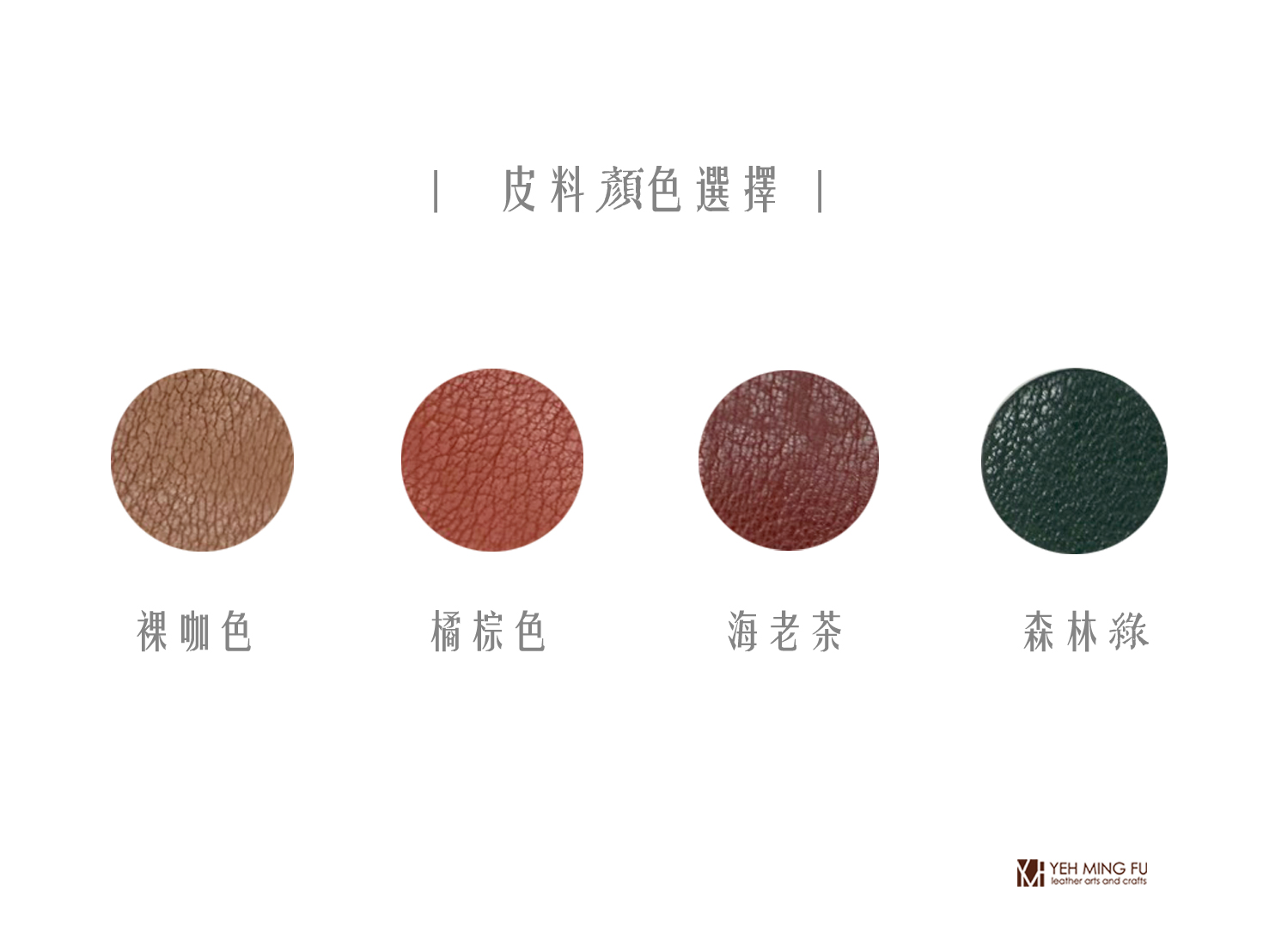 ▲提供裸咖色、橘棕、海老茶、森林綠 4種溫潤色調選擇,請備註想要的顏色