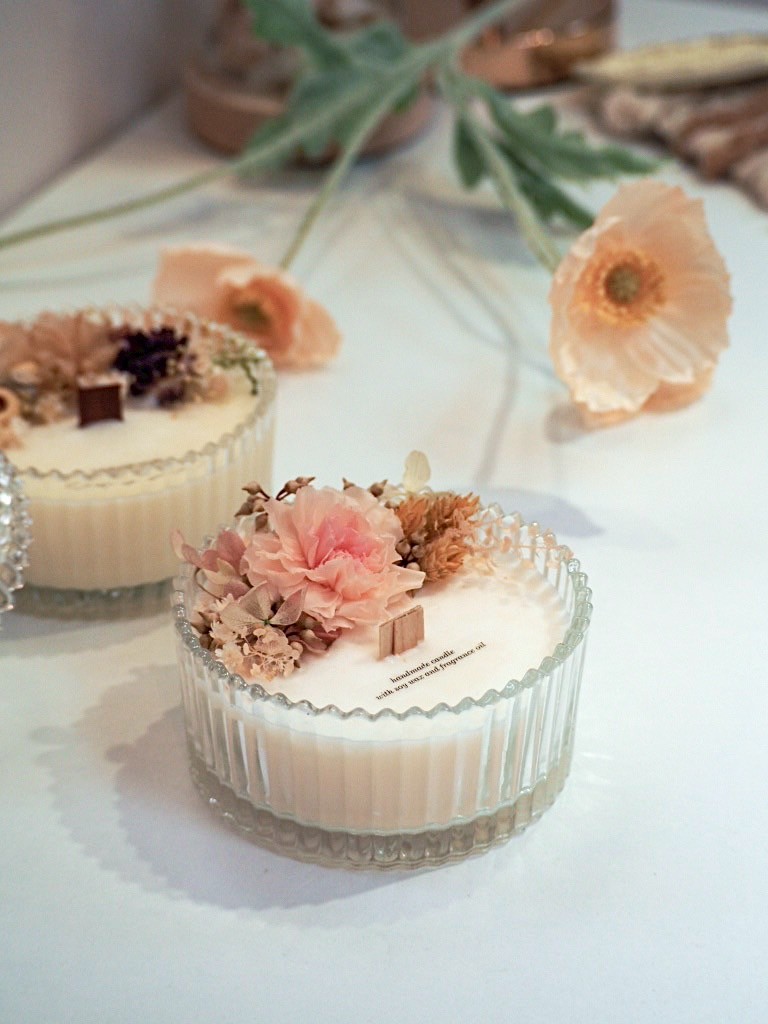 4.一盞時光・康乃馨花園 手作乾燥花香氛蠟燭杯