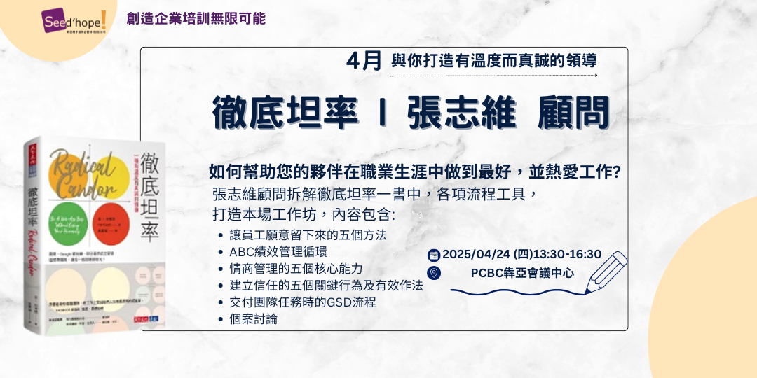 在數據與科技主導的時代,領導的核心仍然在於對人的關懷與誠信。本場次將帶您探索一種新的領導風格-坦率真誠,兼具溫度與同理心,幫助您在領導團隊時,不僅僅依賴數據,更能有效凝聚人心,建立信任與合作文化。