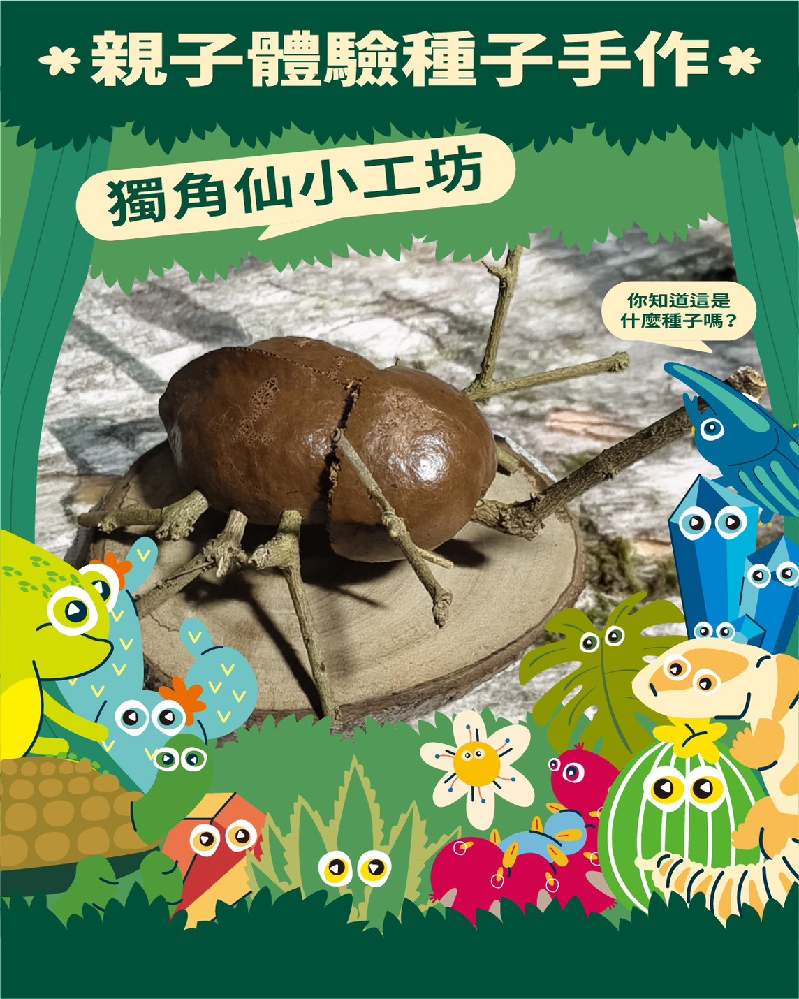 我們以銀葉板根種子、樟木片、竹子,搭配白膠,手作出一隻隻栩栩如生的獨角仙。讓小手感受樹的溫度,讓想像力自在飛翔!親子共創,留下獨一無二的自然回憶。🦋🌱