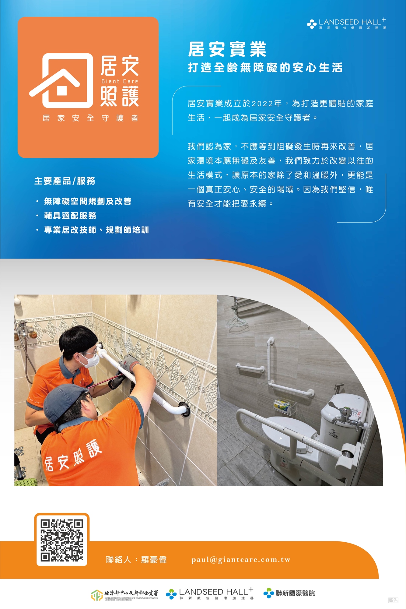 - 社區照顧:藍馨健康、居安照護、新家生醫等企業從居家照護,無礙空間改善到營養保健食品開發讓長者獲得安心的照護。