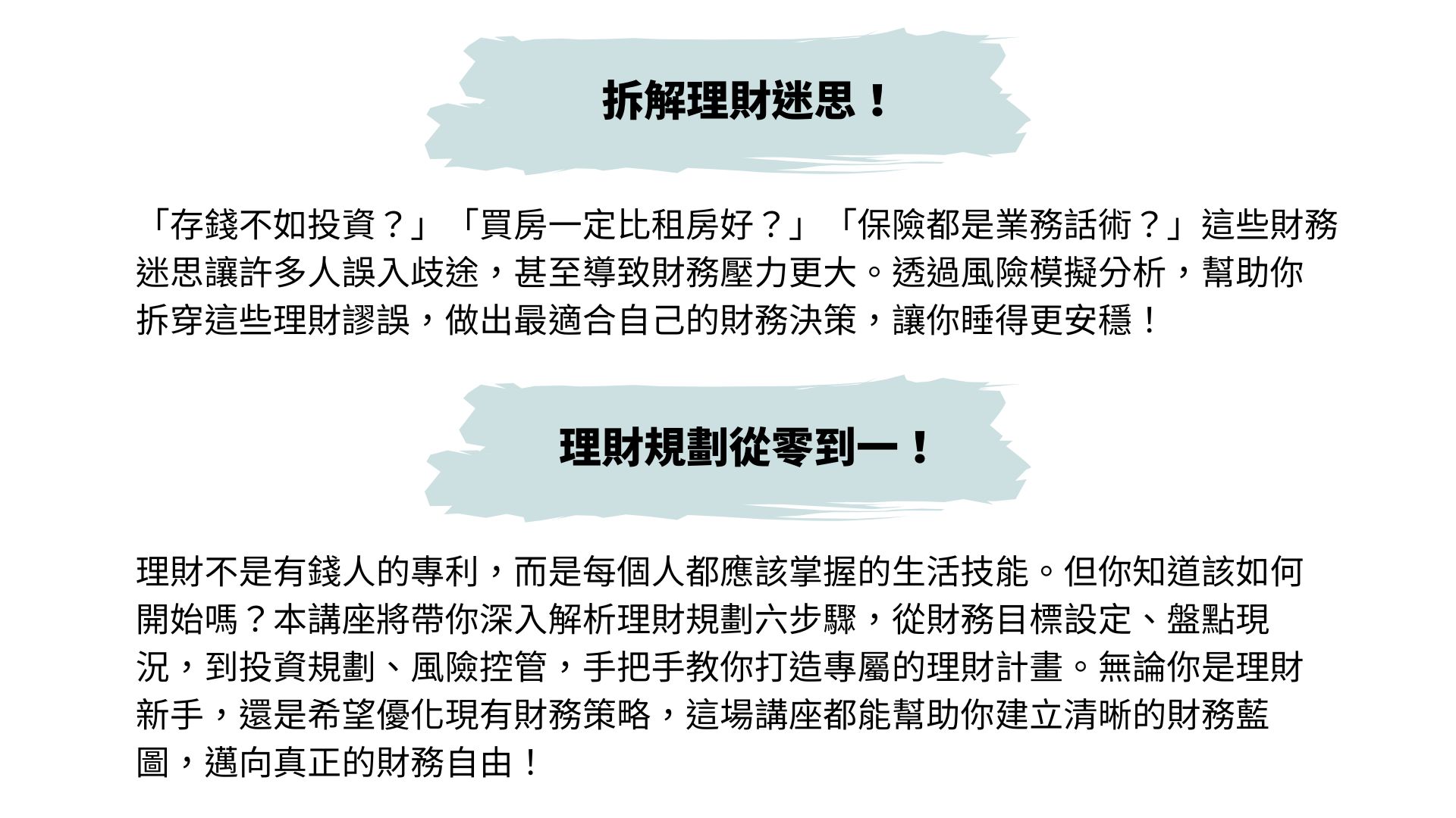 「不要讓你的錢活得比你還累-搞懂理財規劃讓你好好呼吸」理財規劃講座