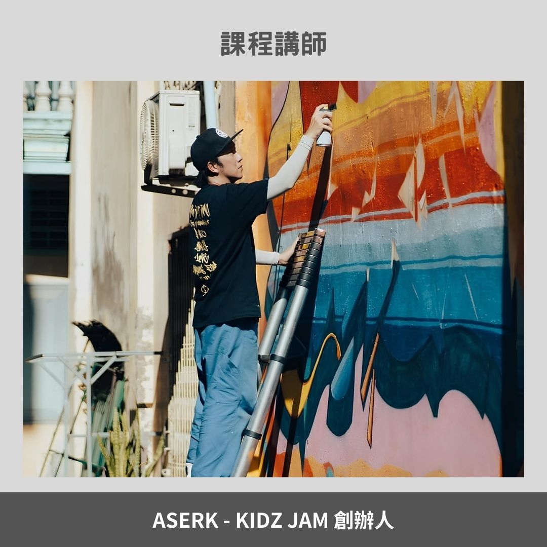 ASERK 是台灣知名街頭藝術家,也是 KIDZ JAM 街頭塗鴉活動的創辦人,長年致力於推廣街頭藝術文化,透過壁畫創作、活動策劃與教學,讓更多人認識並親身體驗塗鴉的魅力。