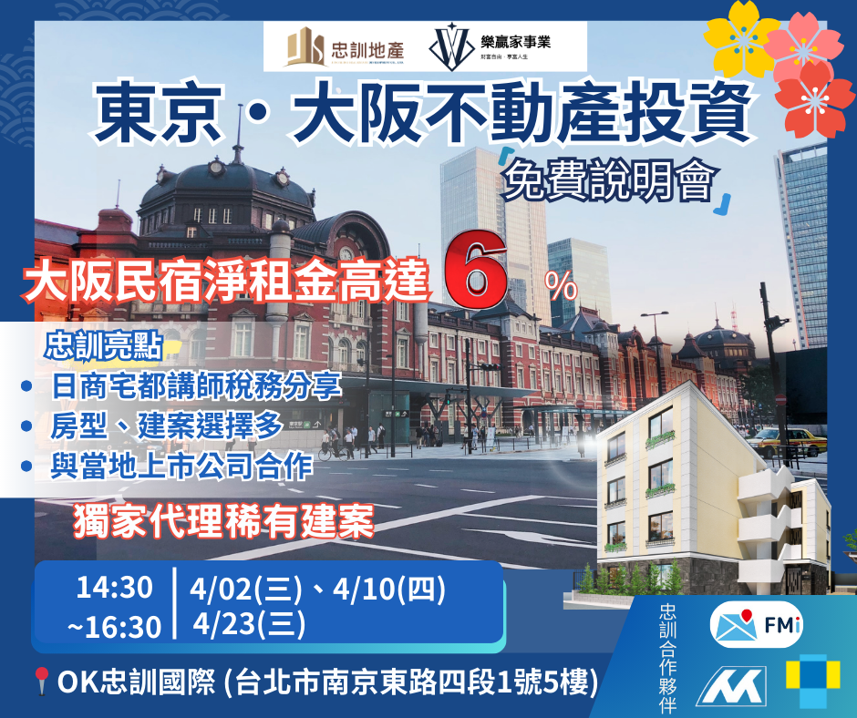 歡迎報名參加免費說明會,輕鬆跟上日本房產投資