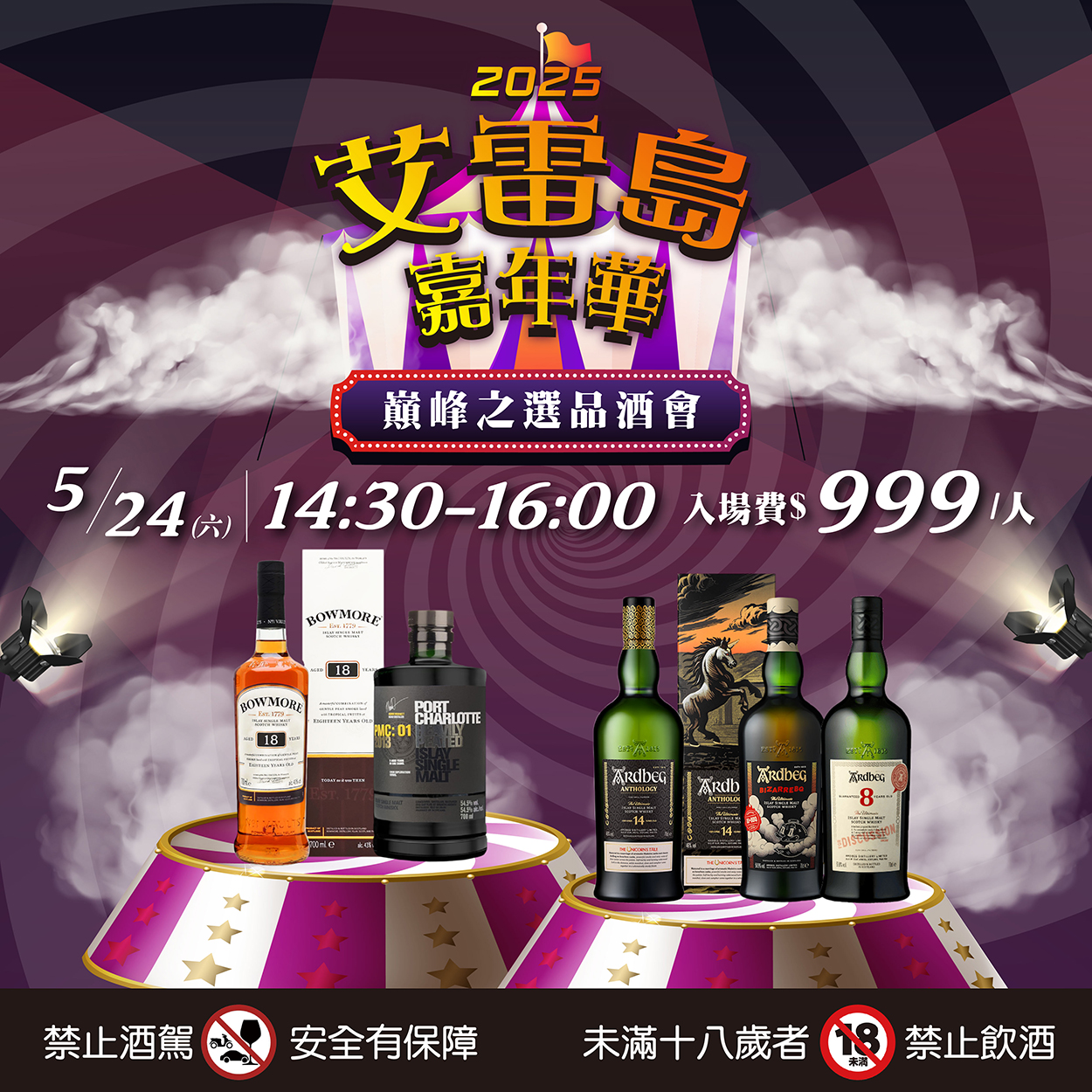從無泥煤到經典重泥煤,從基礎款到稀有佳釀,我們將帶領你逐步體驗艾雷島獨特的煙燻、海風與泥煤風味,感受這片狂野島嶼的靈魂魅力!無論是威士忌新手,還是深耕泥煤風味的玩家,都能在這場活動中找到你的「醉」愛選擇!