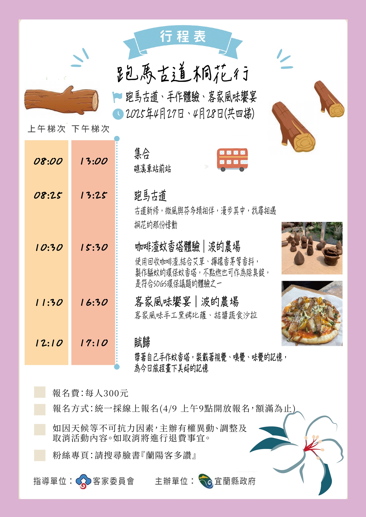 【跑馬古道桐花行】活動時間:4月27日(日)、4月28日(一)