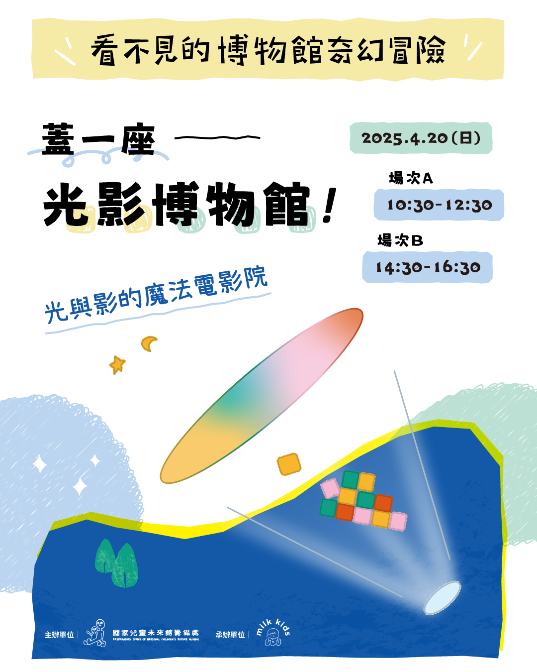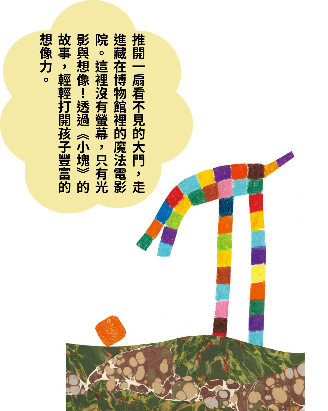 推開一扇看不見的大門,走進一座藏在博物館裡的魔法電影院。這裡沒有螢幕,只有光影與想像!讓《小塊》的故事,輕輕打開孩子豐富的想像力。