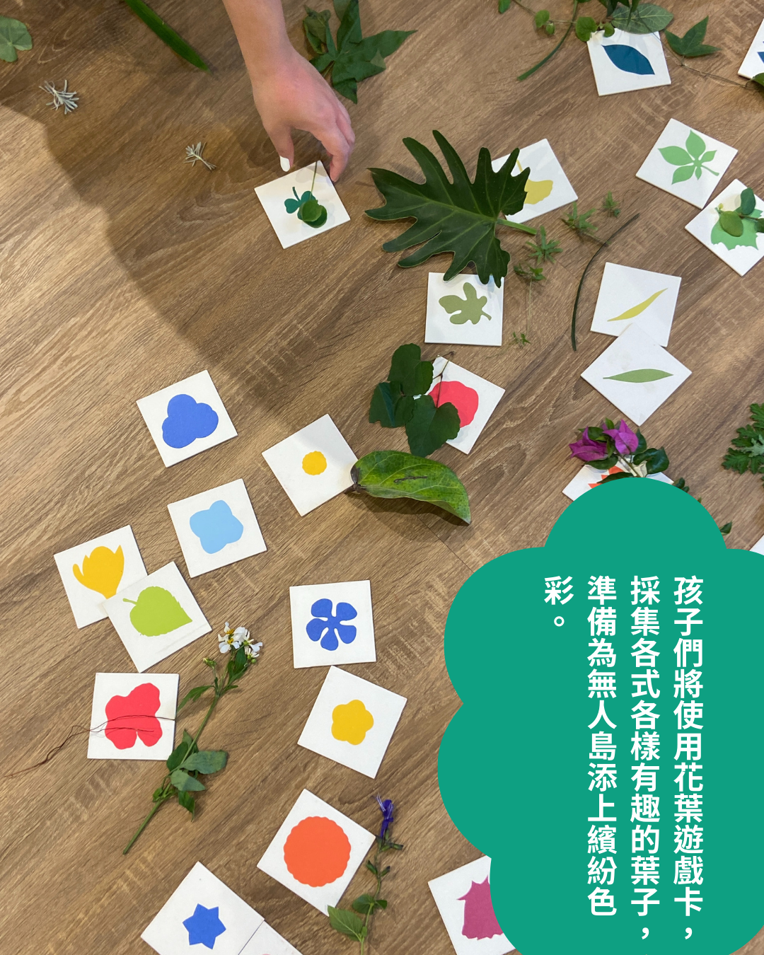 我們將跟著故事裡的小塊,一起踏上奇幻的植物島冒險!孩子們將使用花葉遊戲卡,採集各式各樣有趣的葉子,準備為無人島添上繽紛色彩。