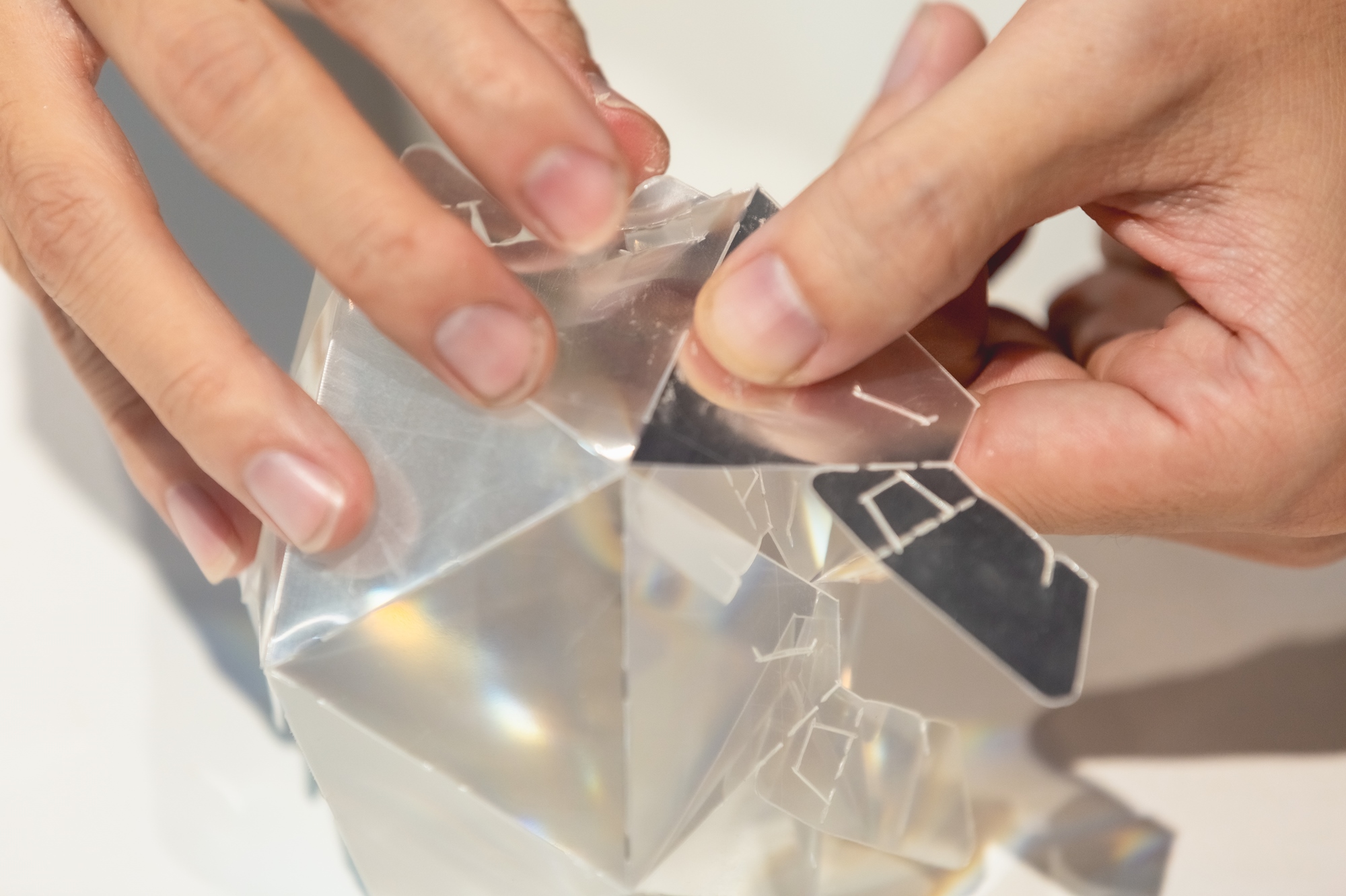 ⬆︎「火箭窗花燈球」使用廢棄的偏光膜,利用它透光又薄韌的特性,製作成DIY的小燈球。