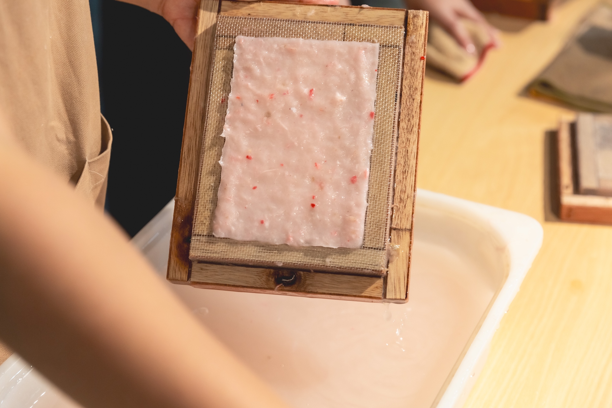 從挑選紙漿、抄紙、晾曬一步步,最後再添增一點自己的隨性發揮,