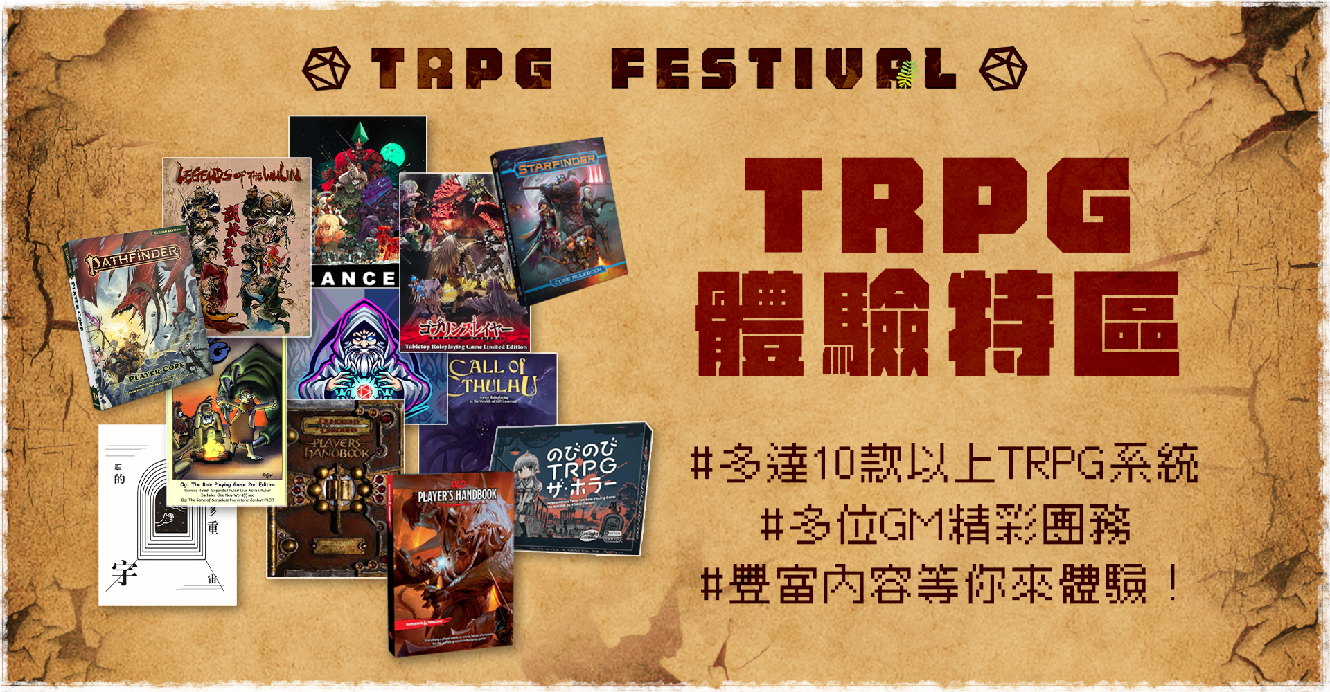 📢 更多活動資訊將陸續公開,敬請鎖定 TRPG FES.粉絲專頁 或 TRPG嘉年華活動官網 !