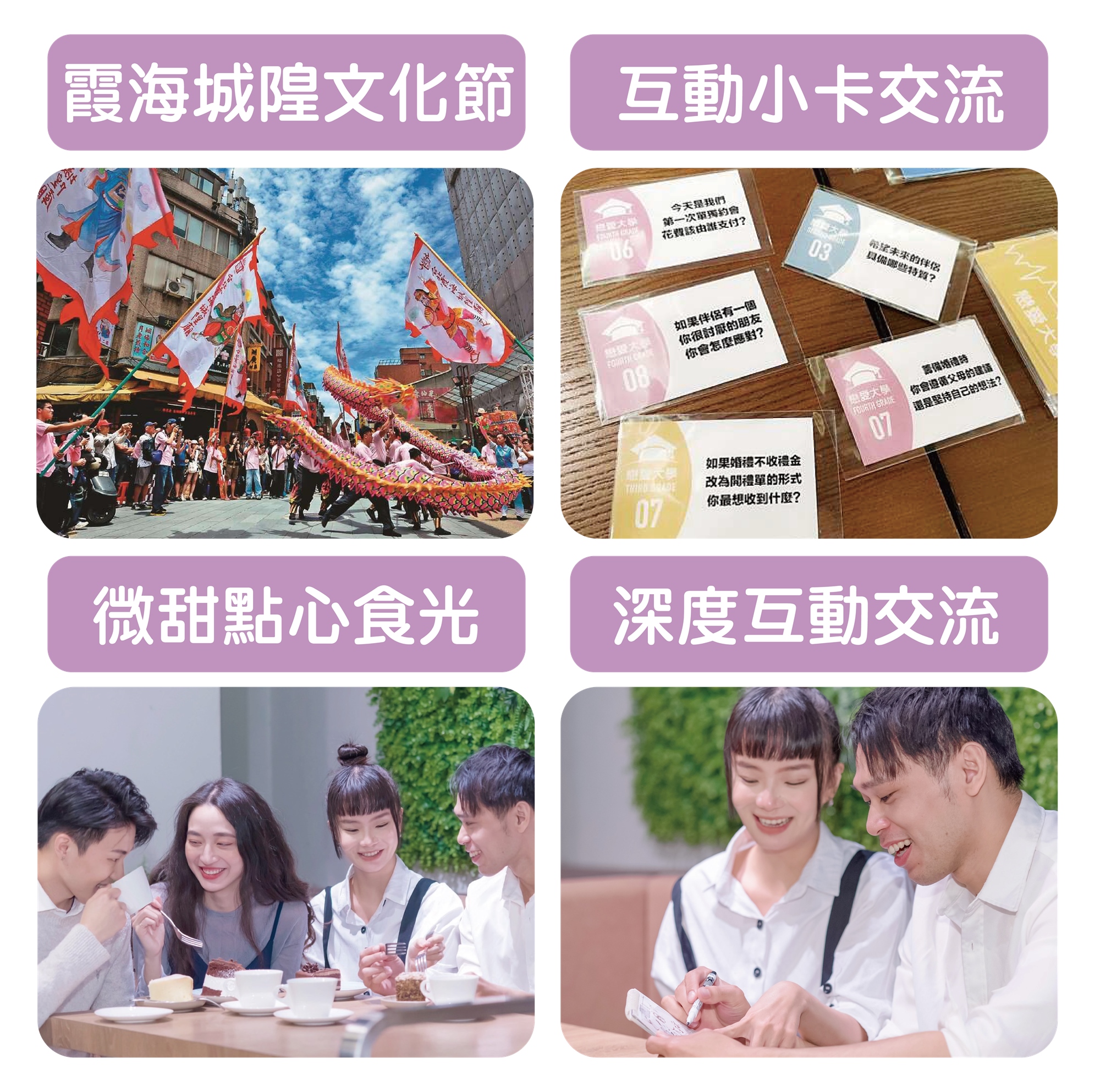 探索台北歷史與文化的精華,這場單身聯誼活動將帶你漫遊充滿故事的大稻埕,並參與台北霞海城隍文化節的精彩導覽。活動中,你將與新朋友一同走過古老的街巷,了解城隍廟的歷史與傳統,並在這充滿文化氛圍的過程中建立聯繫。輕鬆的步行與深入的文化體驗,讓你在交流中享受探索,開啟全新社交旅程!