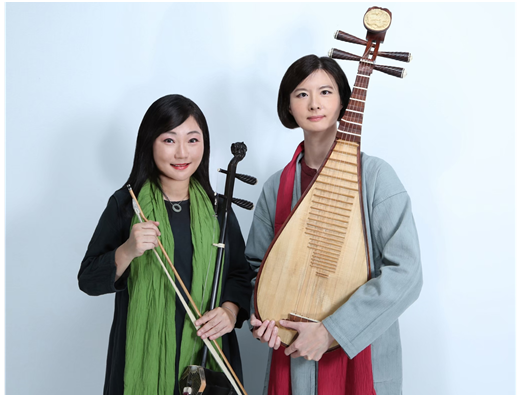 「上玹樂集」之團長、琵琶團員/劉芛華(右) 與 音樂總監、二胡團員/林正欣(左)
