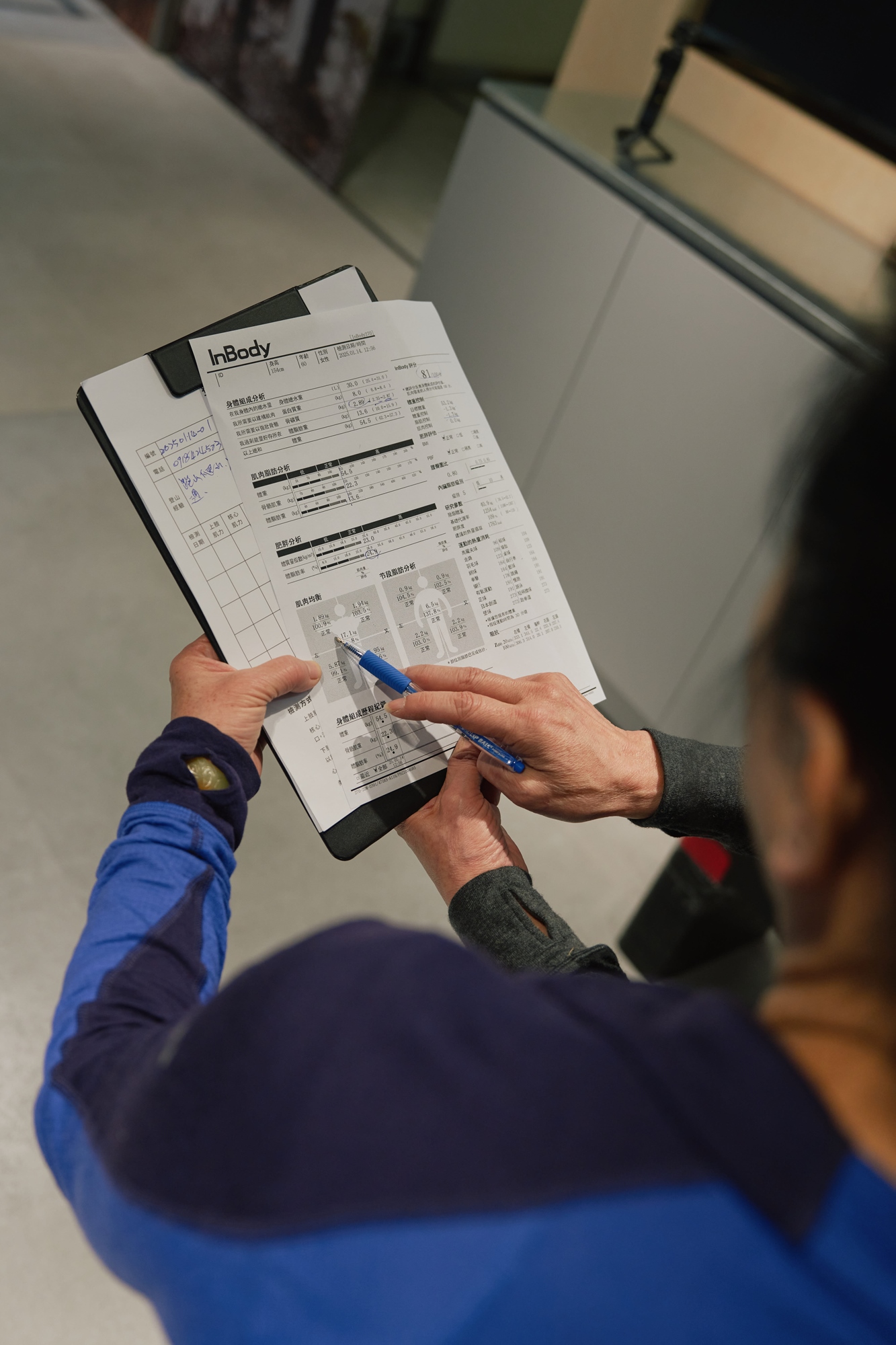 我們由專業的體適能教練協助進行InBody 檢測,精確測量肌肉量、脂肪量、體脂率、內臟脂肪指數、基礎代謝率等重要指標,可以立即得到身體的量化科學數據。針對登山所需的上肢肌力,下肢肌力,核心肌力,心肺功能以及柔軟度,我們協助客人檢測評估目前狀況,並針對需要改善強化的部分,提出居家徒手訓練的建議與教學。