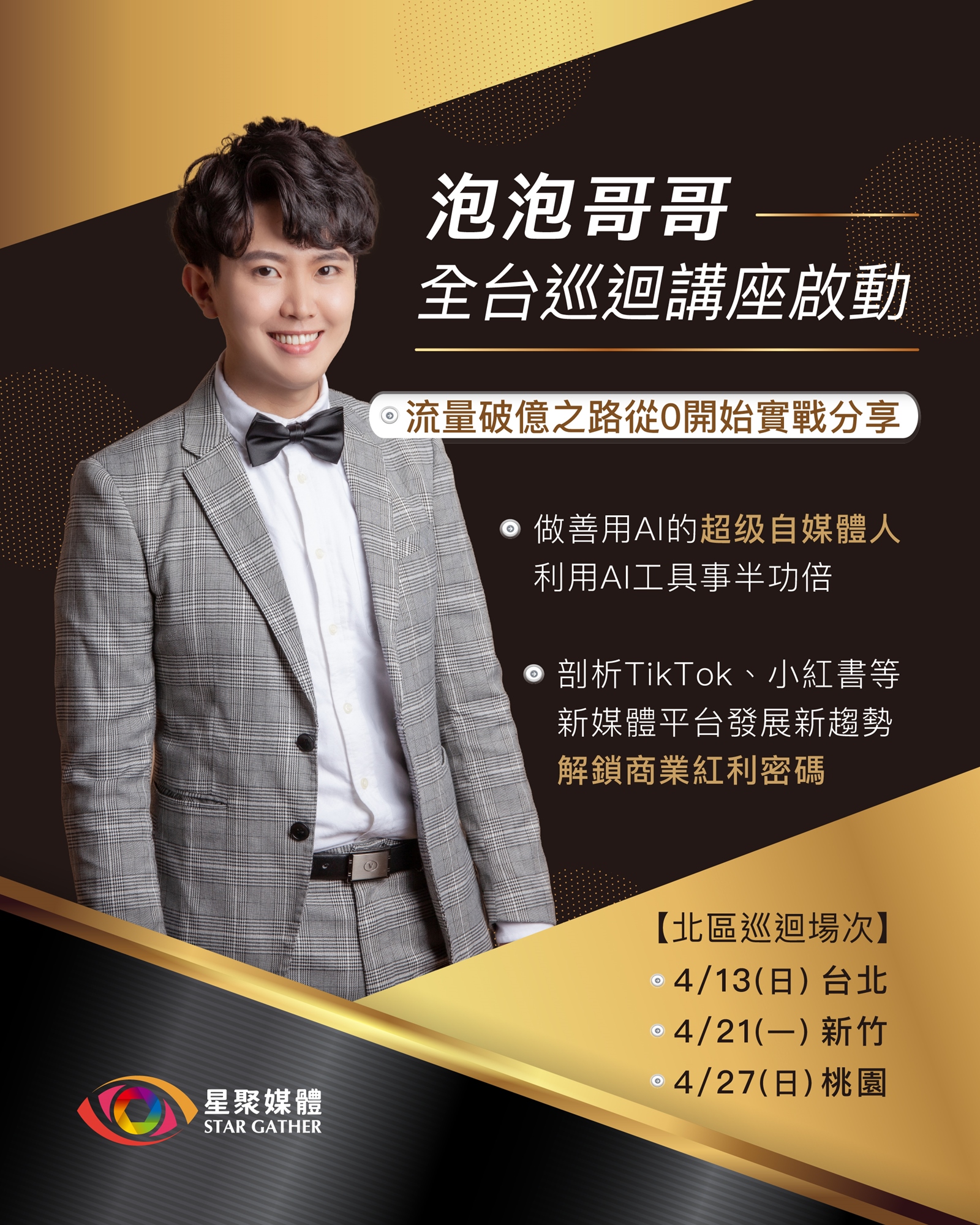 👉 泡泡哥哥將分享他的心路歷程,從個位數粉絲到成為親子KOL、自媒體講師,如何一步步累積影響力,打造現今的流量帝國