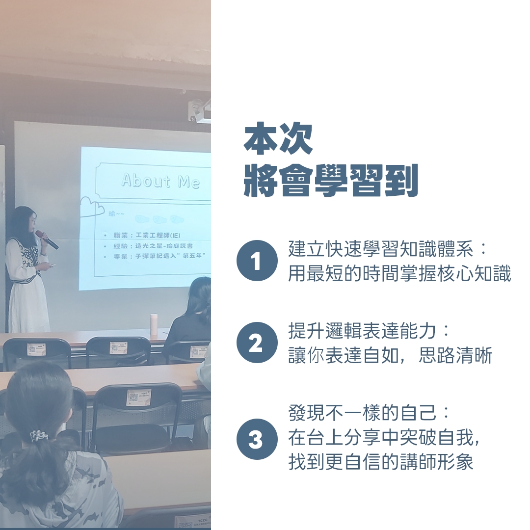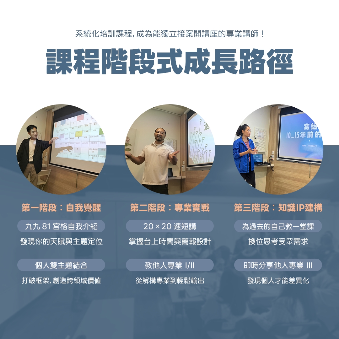 🎤 系統化培訓課程,成為能夠獨立接案開講座的專業講師!
