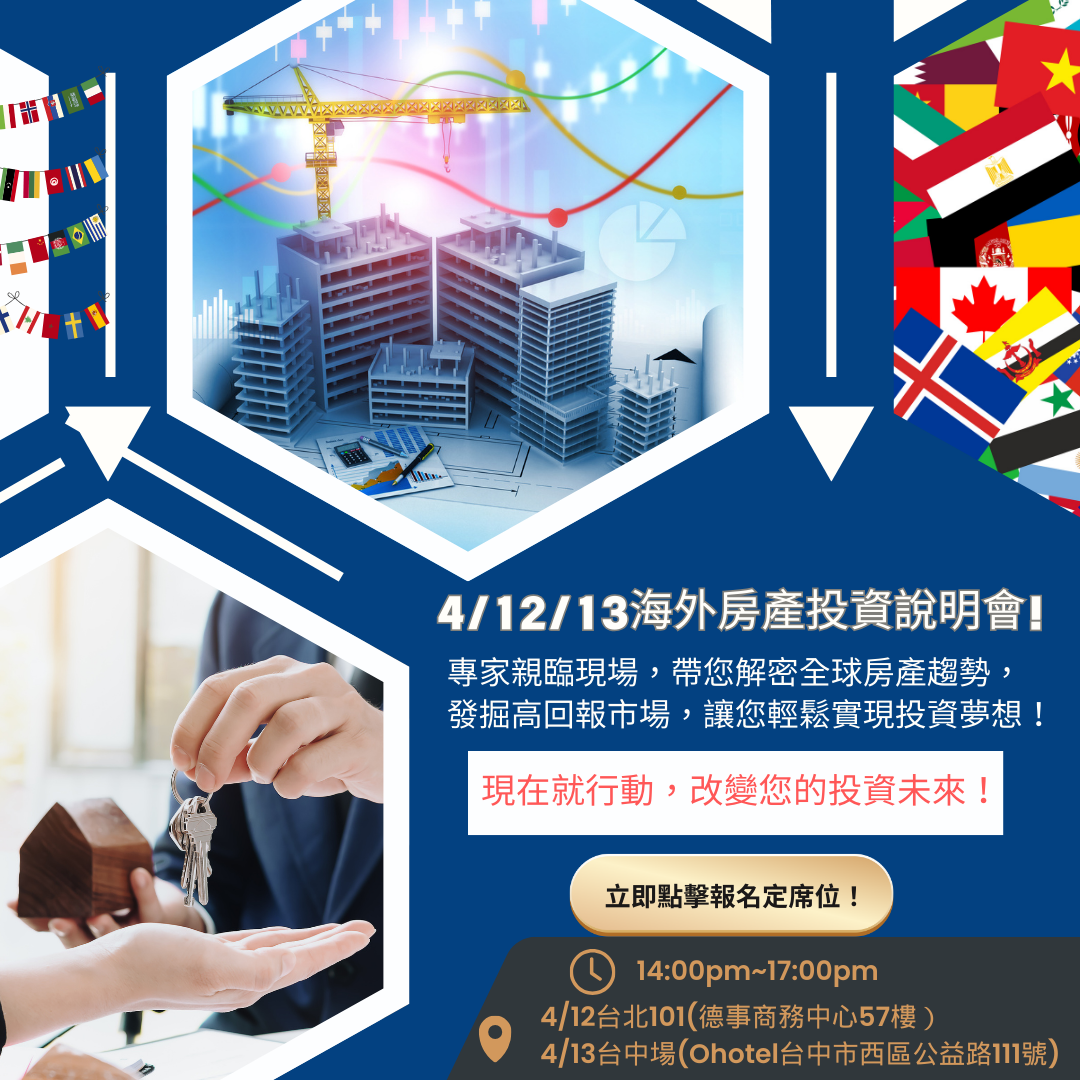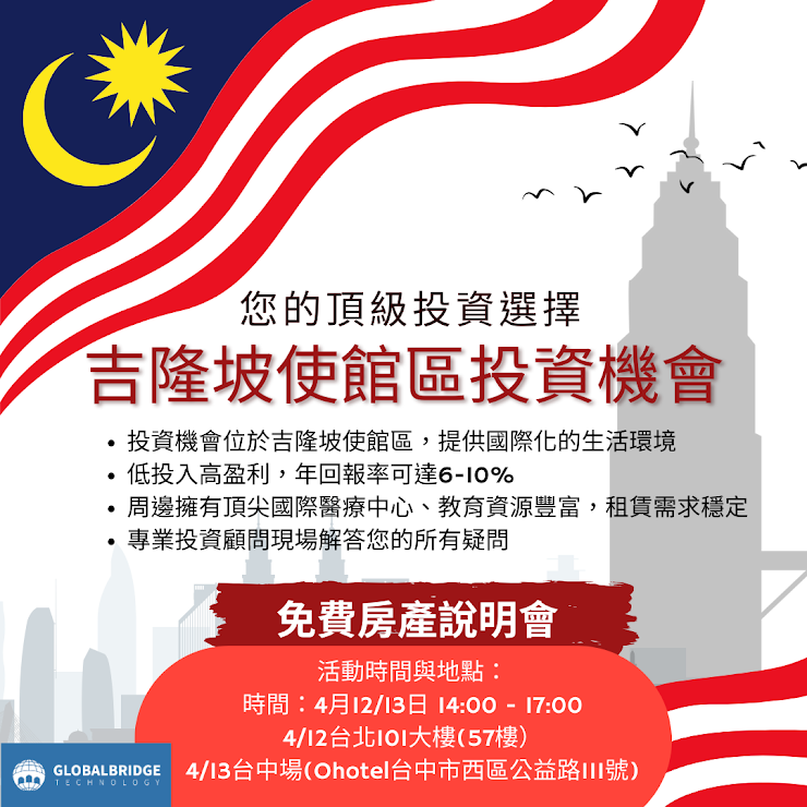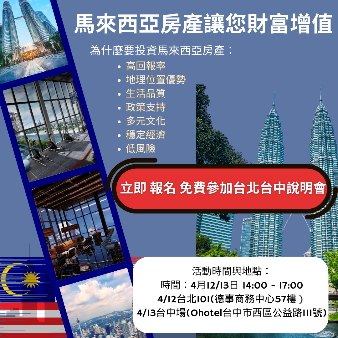 4/12-13 格羅資本邀請您參加【馬來西亞房產說明會】,深入解析投資策略與市場潛力!