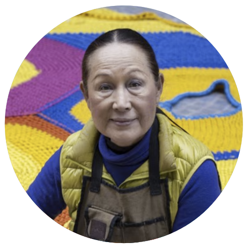 Agata Oleksiak,藝名 Olek,是一位波蘭藝術家,現居紐約。她的作品涵蓋雕塑、裝置藝術(如鉤織自行車 crocheted bicycles)、充氣藝術、行為藝術以及纖維藝術。Olek 曾以鉤織覆蓋建築、雕塑、人群,甚至整間公寓,並在美國、英國、德國、巴西、土耳其、法國、義大利、波蘭和哥斯大黎加等地展出作品。Olek 的藝術探索性別、女性主義理念,以及透過色彩、概念性探索與精細細節所呈現的溝通演變。她不斷挑戰時尚、藝術、工藝與公共藝術之間的界限,巧妙融合雕塑與奇幻想像。透過傳統的鉤織技法,她將紗線這種短暫易逝的媒介,轉化為表達日常經驗、靈感與希望的工具,並藉此隱喻身體與心理過程的複雜性與相互連結。