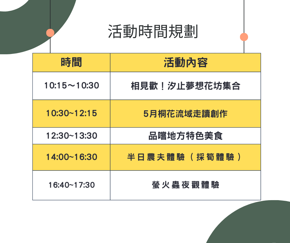 5/4(日)汐流賞桐微光行,推廣費 $499元 (採筍體驗&螢火蟲夜觀)