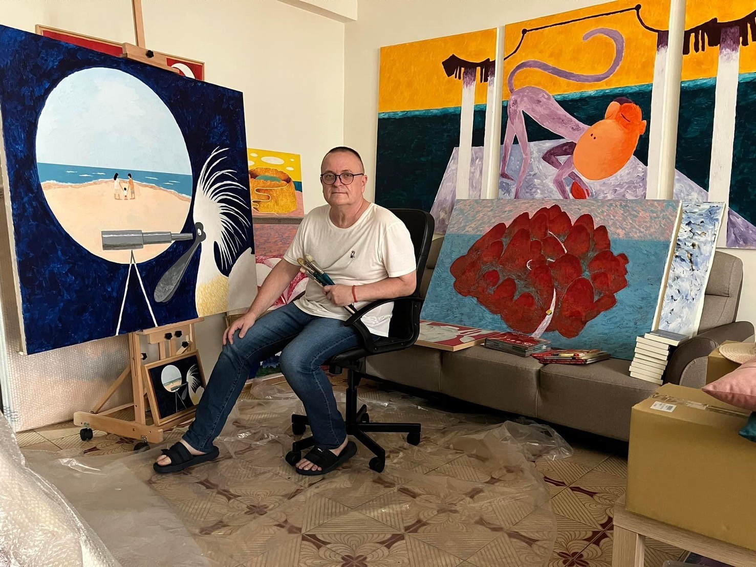 麋鹿出版社(Mi:Lù Publishing)出版他的最新中文作品包括《皮皮和奇奇》、《魔法列車Go!Go!Go!》、《男孩與月亮》等書。