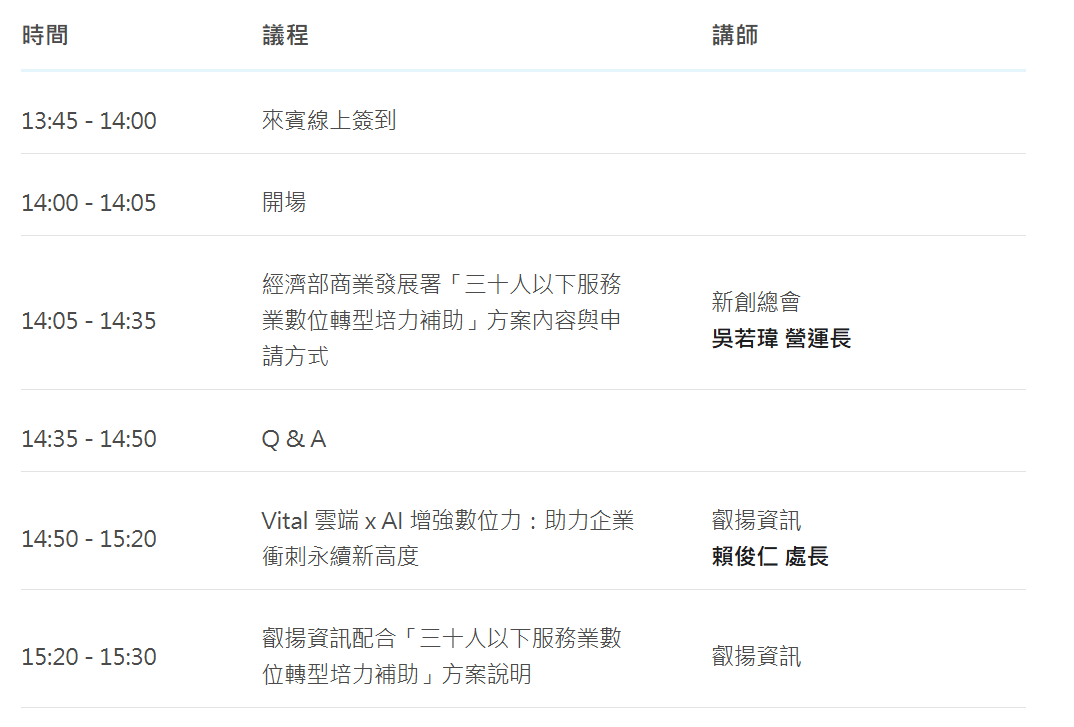叡揚資訊專場 三十人以下服務業數位轉型培力補助方案 線上說明會