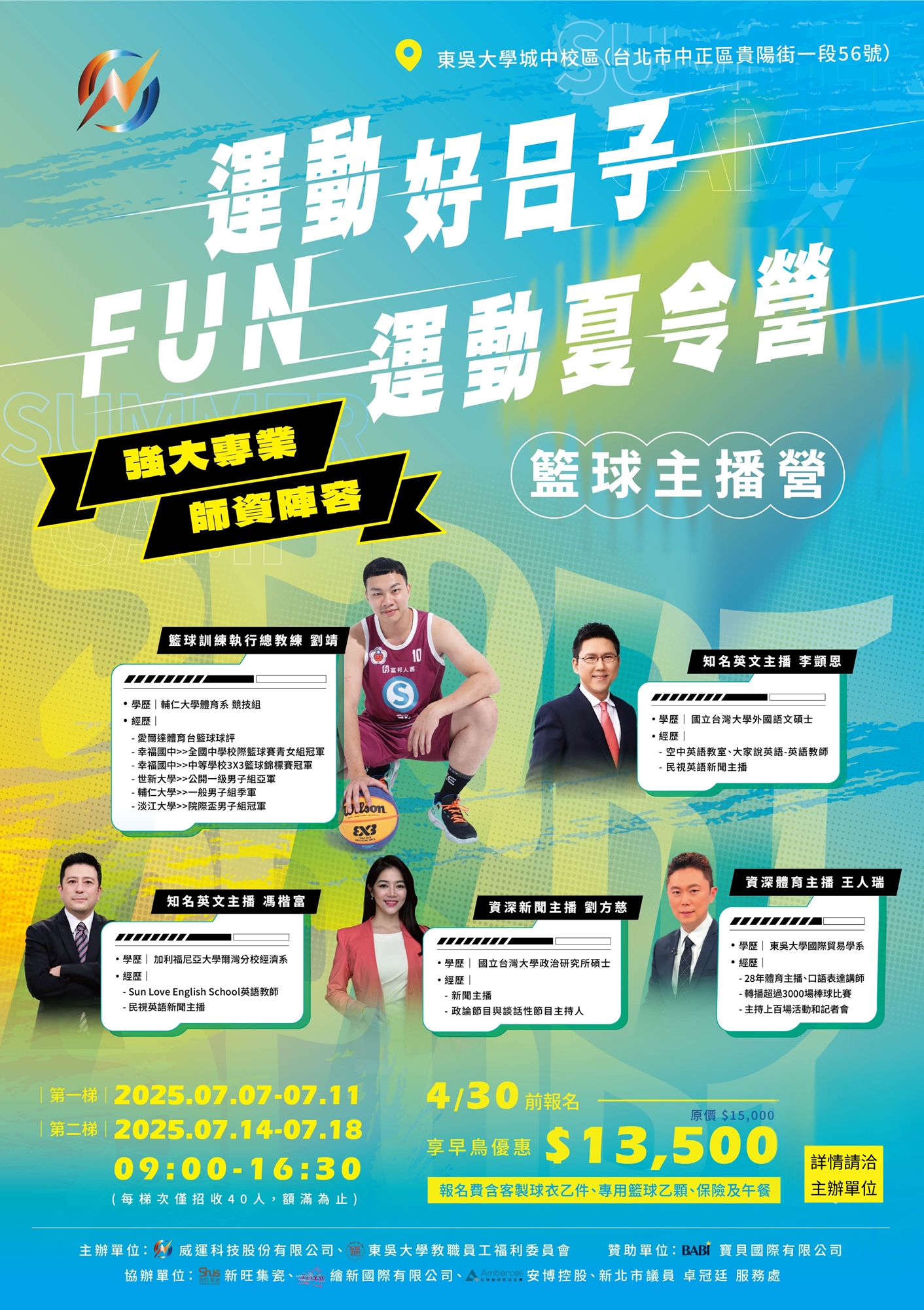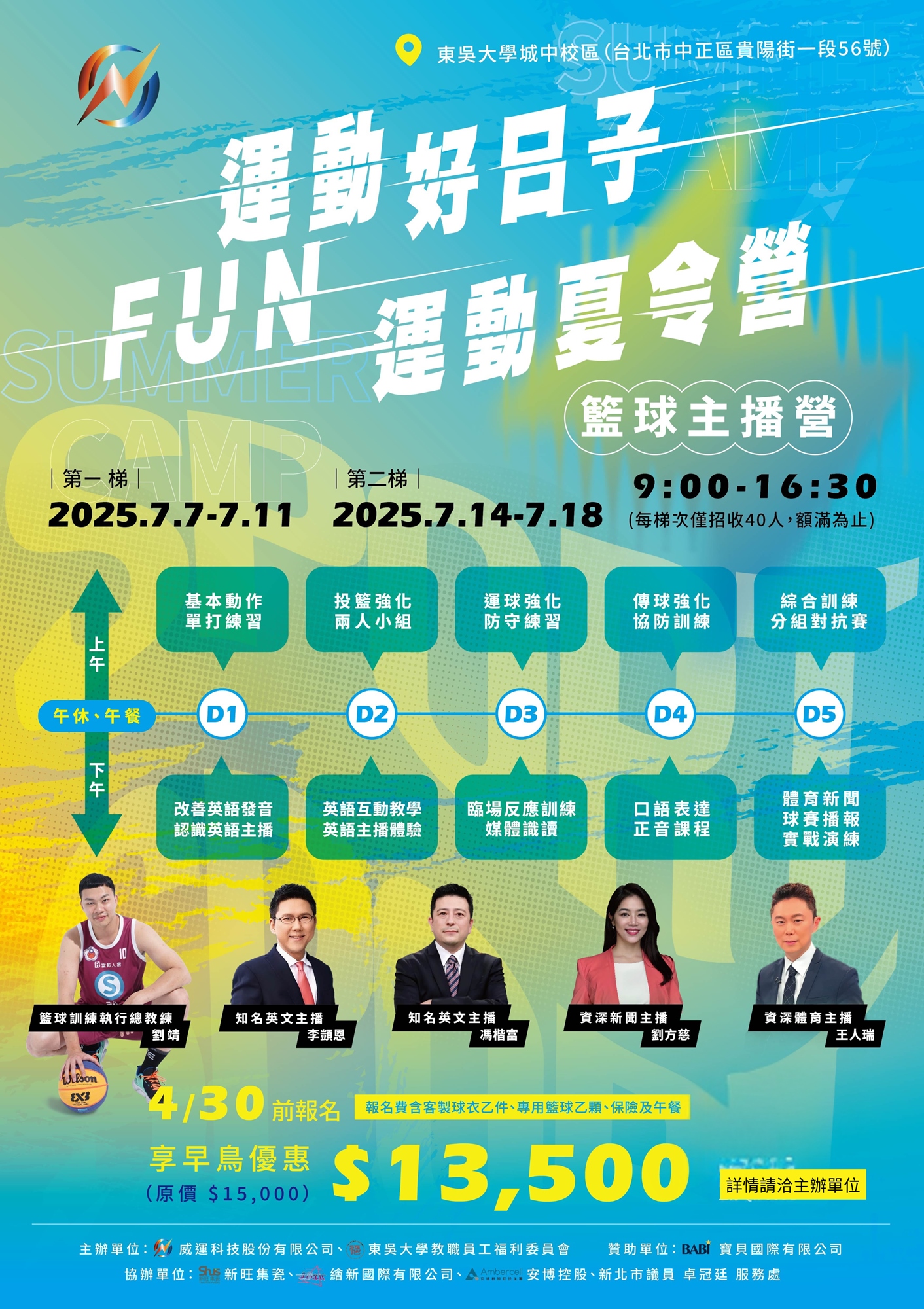 ⛧早鳥優惠:4/30前報名 $13,500,含客製球衣、專用籃球、午餐及保險
