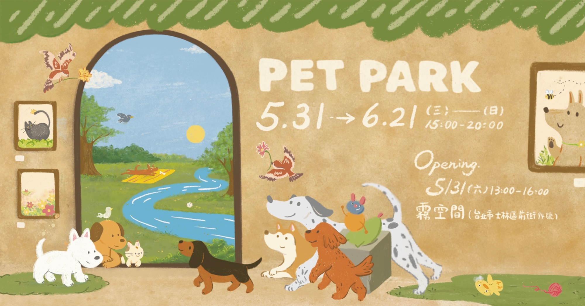 《 PET PARK 》是一個日常想像的開始,一個融合自然、動物與人類生活節奏的共構提案。我們希望透過這場展覽,讓觀者重新認識那些我們早已習以為常的城市角落:公園、草地、步道,這些不只是人類休憩的場所,也承載著無數非人生命的感知與活動軌跡。