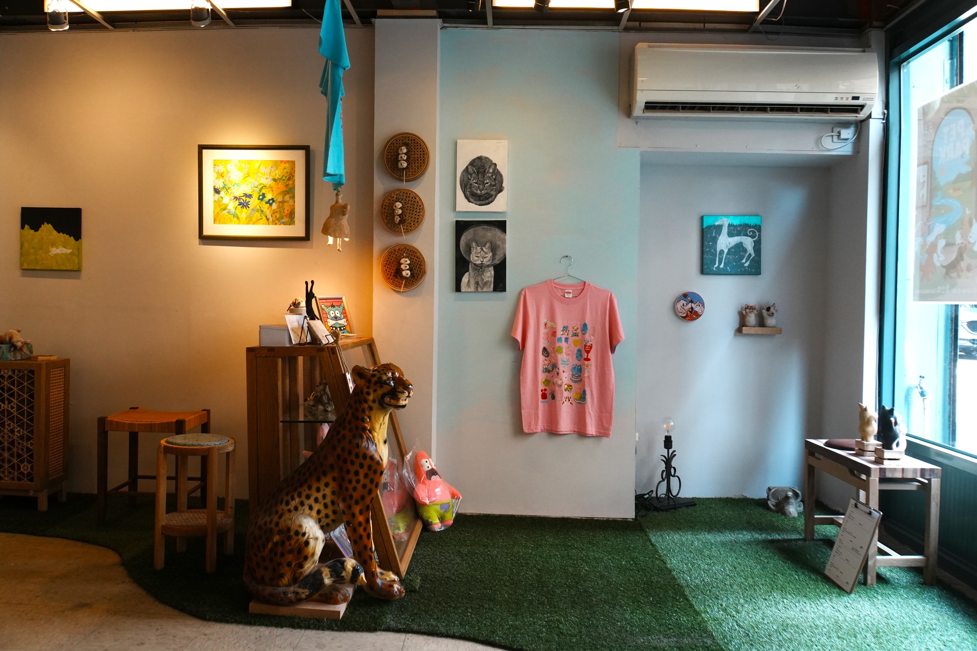 作為這裡的靈魂象徵,五老闆不僅長期陪伴我們的日常,也經常參與藝術家的佈展與開幕活動,甚至會靜靜地陪伴觀眾駐足於作品前。牠是鄰居眼中親切的招牌、藝術家們的開心果,也是許多觀眾記憶中最療癒的陪伴。