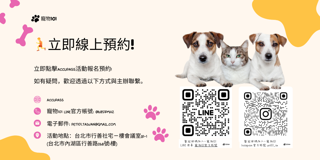 💻 聯絡方式:如有疑問,歡迎使用電郵(pet101.taiwan@gmail.com)或LINE(@685lpmhz)與主辦單位聯繫