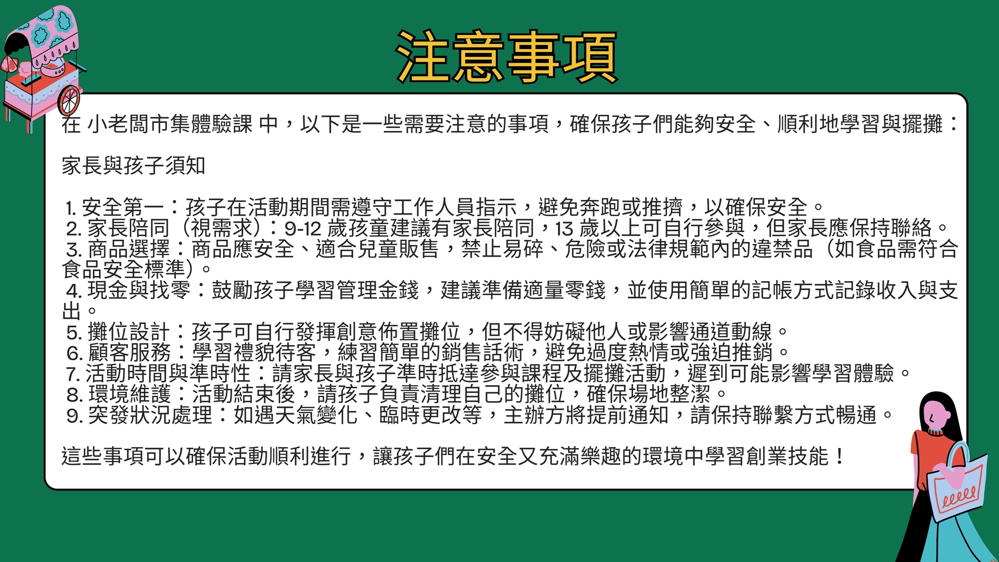 📢6-12歲小朋友建議家長陪同,13歲以上小朋友可自行參加,但家長應保持聯絡。