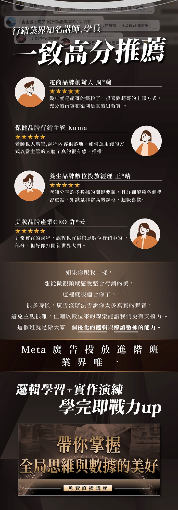 這個班就是給大家優化的邏輯與解讀數據的能力。