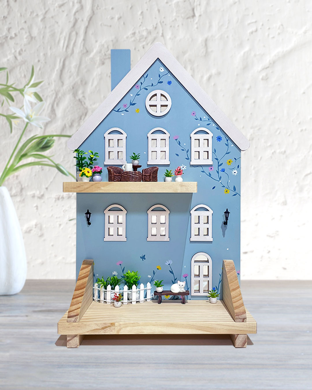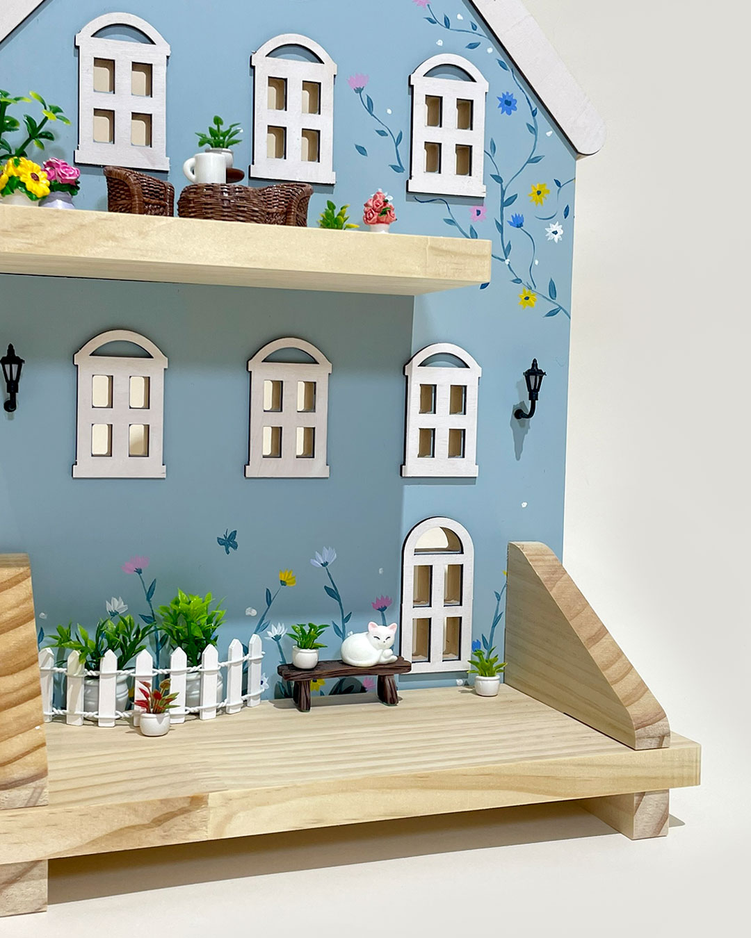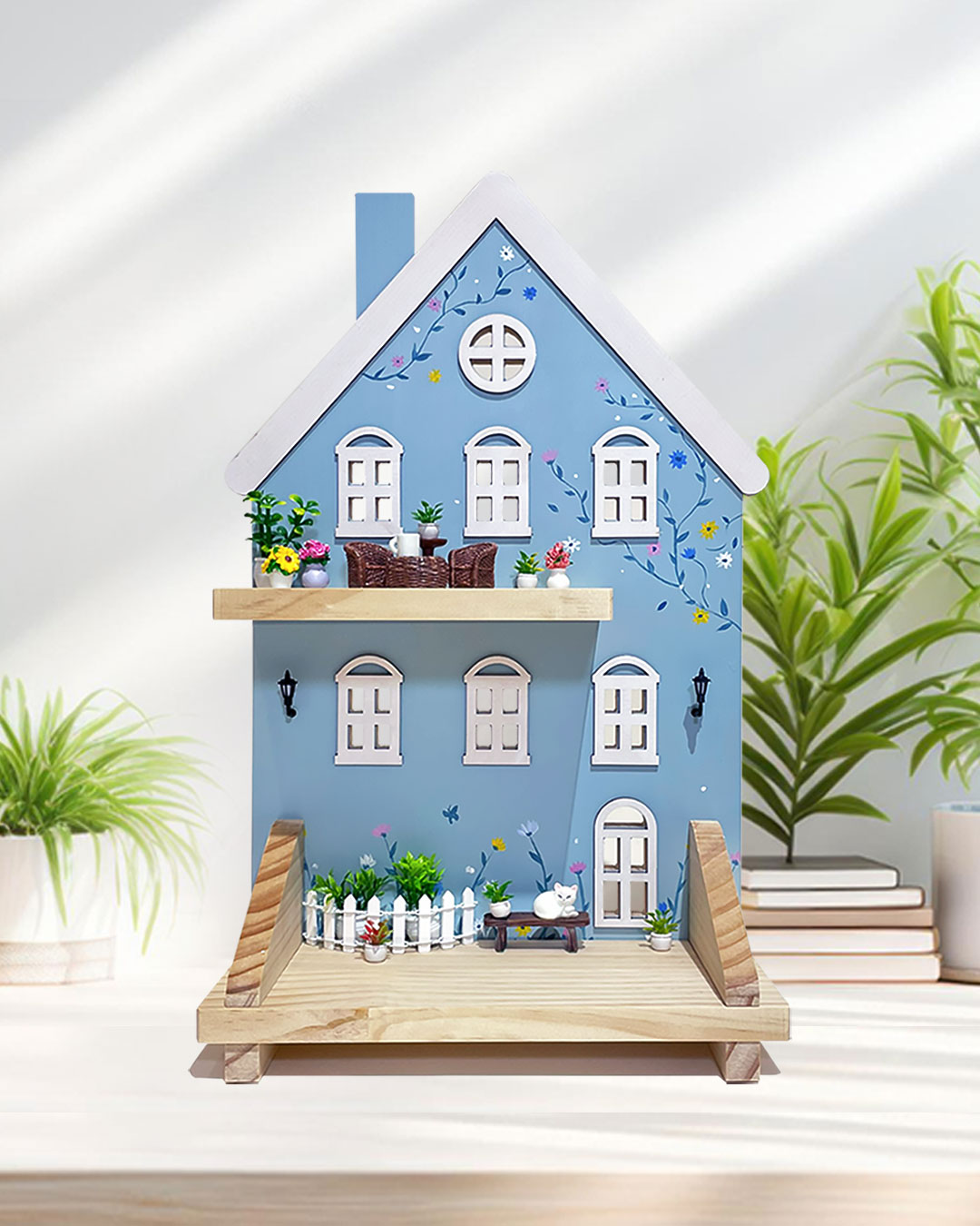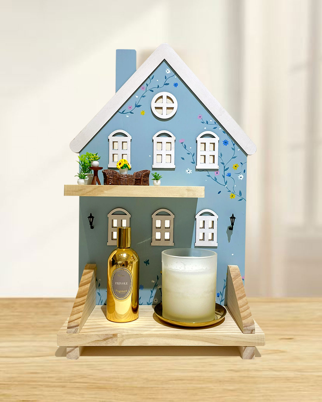房屋造型實木置物架一個(尺寸:23*13*37公分)