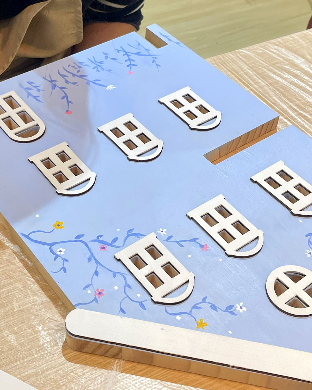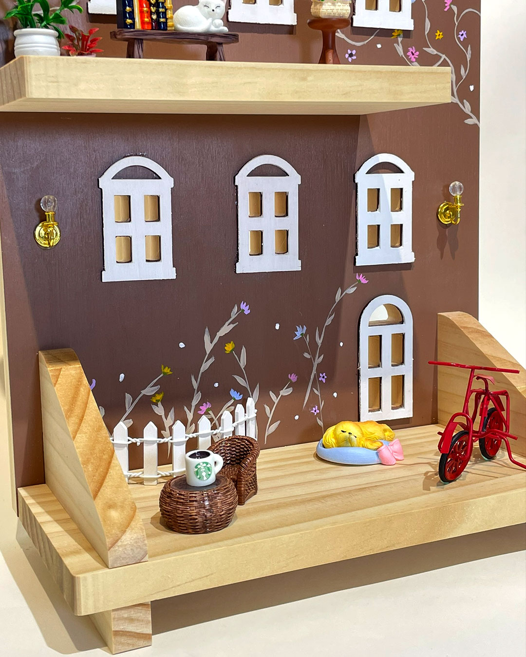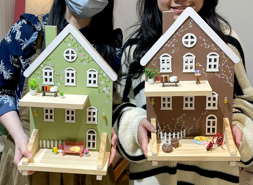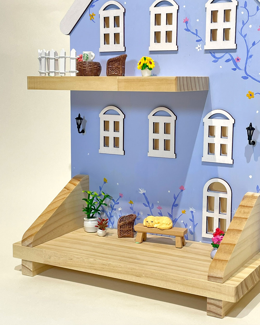 4.房屋造型展示架的主色以老師提供色系為主,以夢幻的馬卡龍色調為參考,讓空間增添不一樣的色彩。