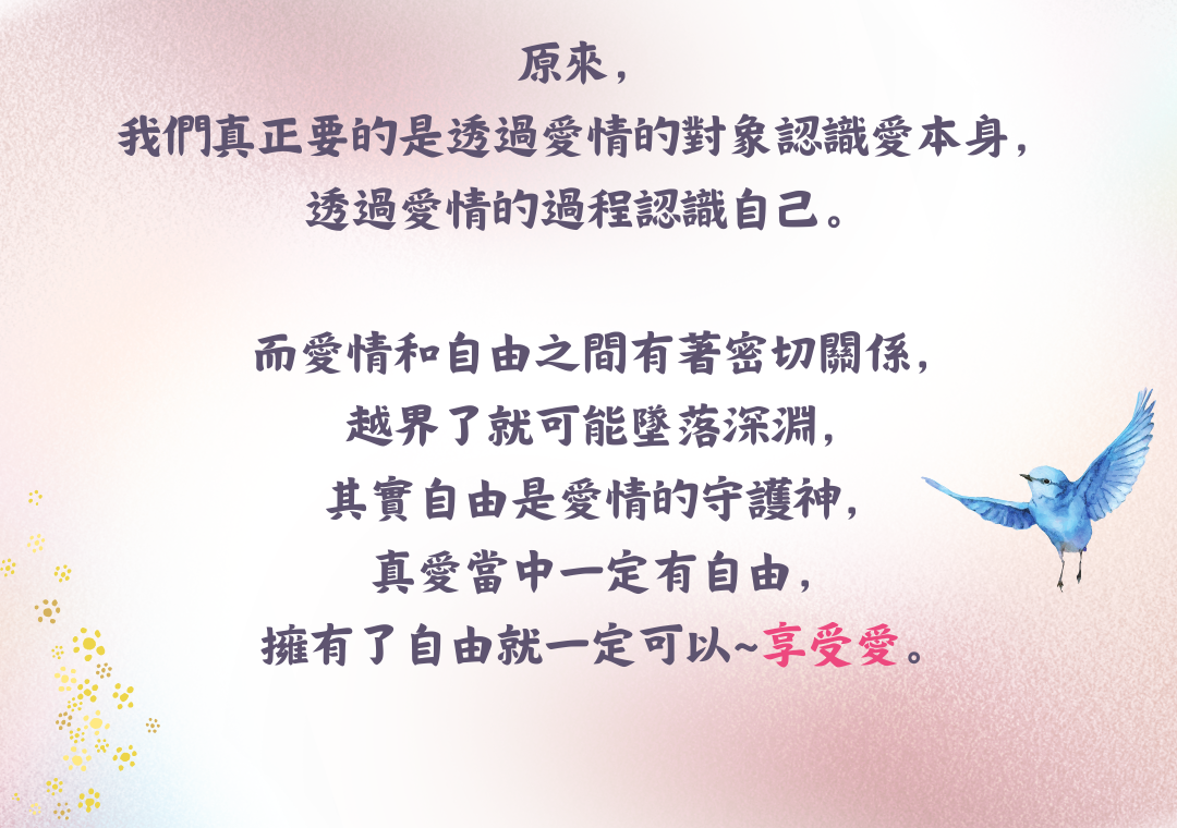 讓我們在春光明媚的午後,來一場關於愛情與自由的親密對話——給願意在愛裡覺醒、也願意自由前行的你。