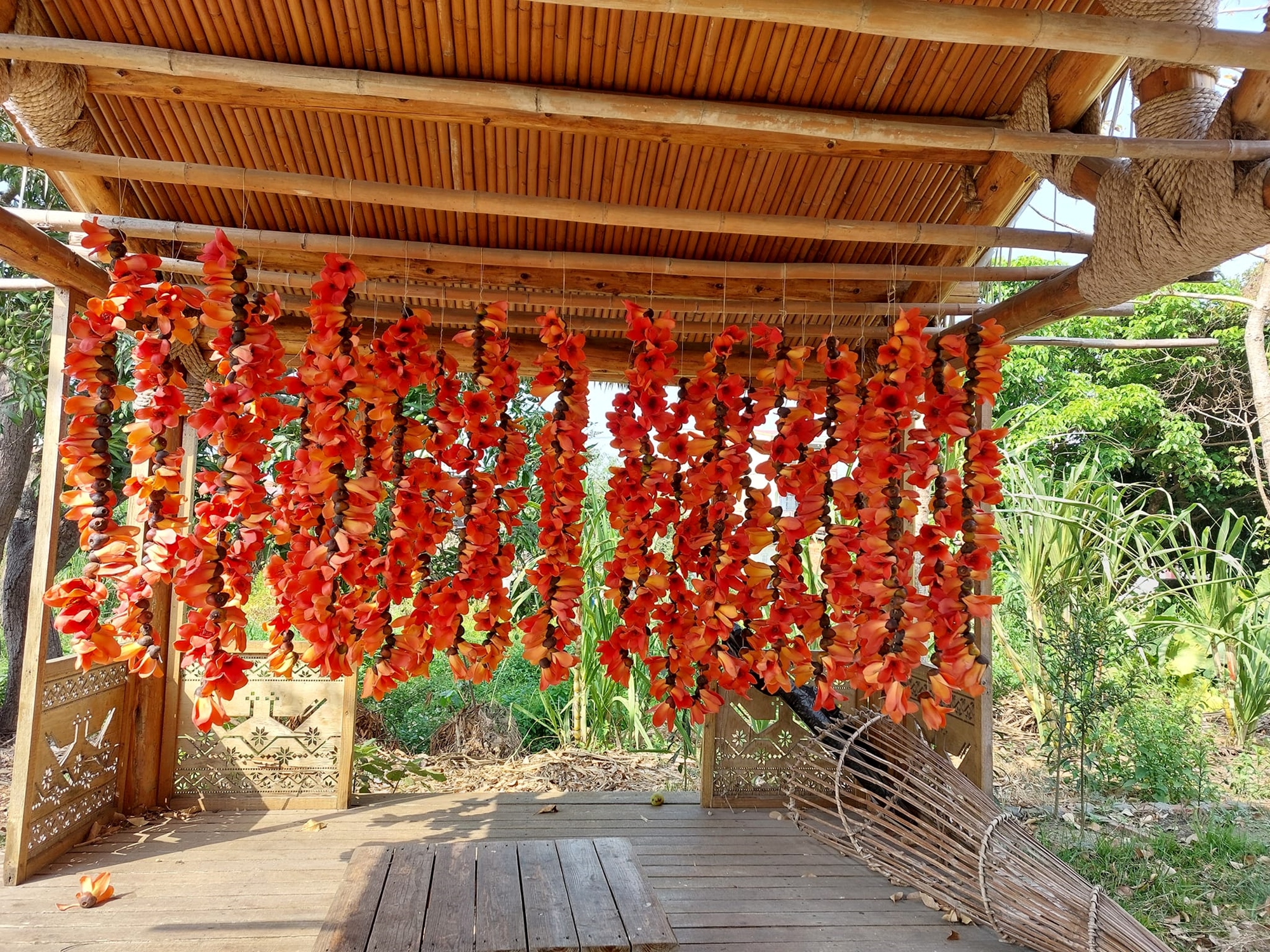 ジーベイシャの名前は、木棉の花に由来しています。花の開花から実を結ぶまで、その一生はシラヤ族の生活と密接に関わっています。橙紅色の花びらが自然に舞い落ちると、それは独特な風味を持つお茶に変わります。蒴果に含まれる綿の繊維は、かつて日本の商人との貿易資源となり、またはふわふわとした枕として使われました。さらに、果殻は狩人たちの外出用の弁当箱としても使われ、独自の文化的な色合いを形成してきました。
