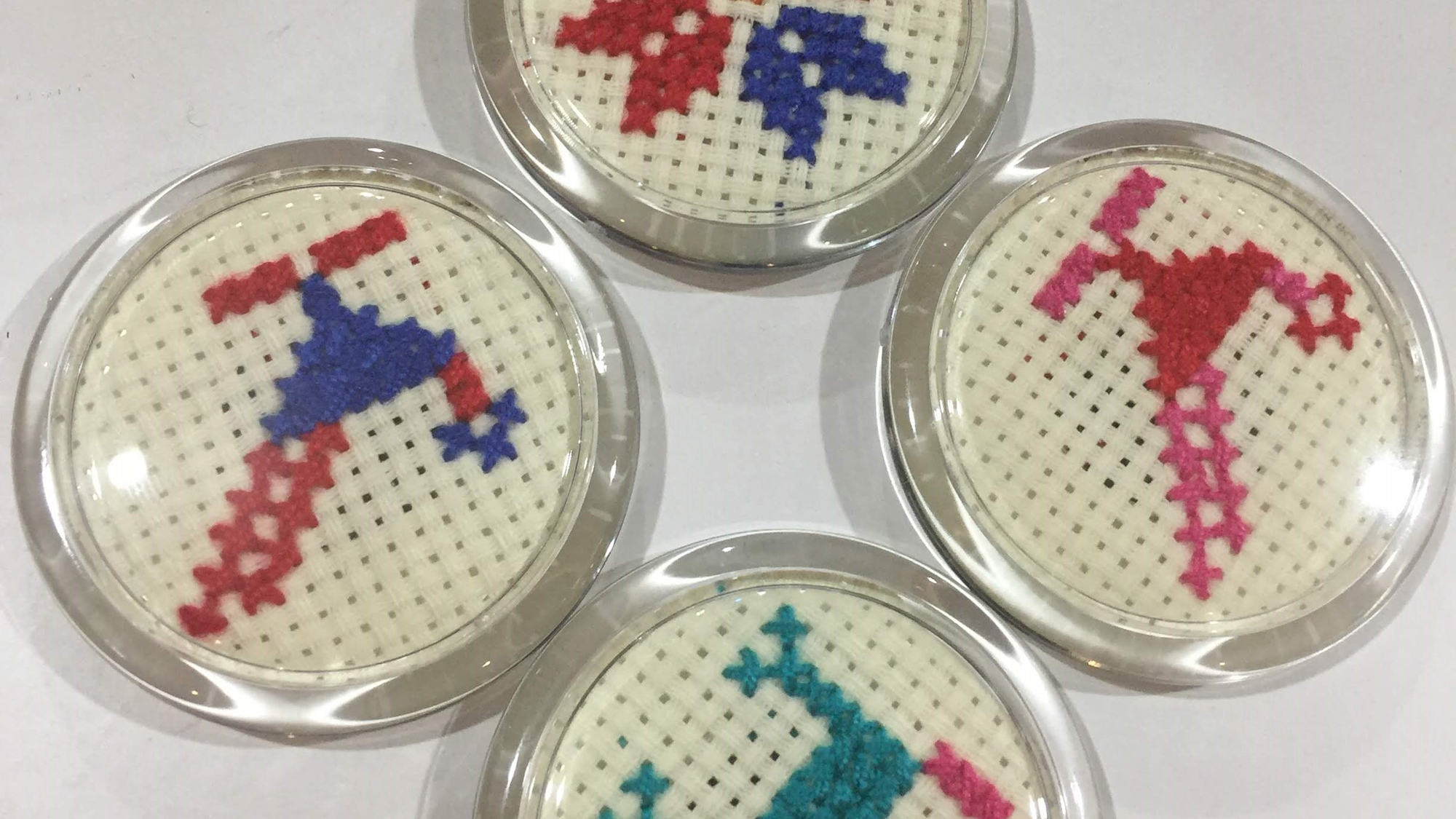 ➁ 手作り工芸:針と糸を使って、シラヤ族のトーテムを描く