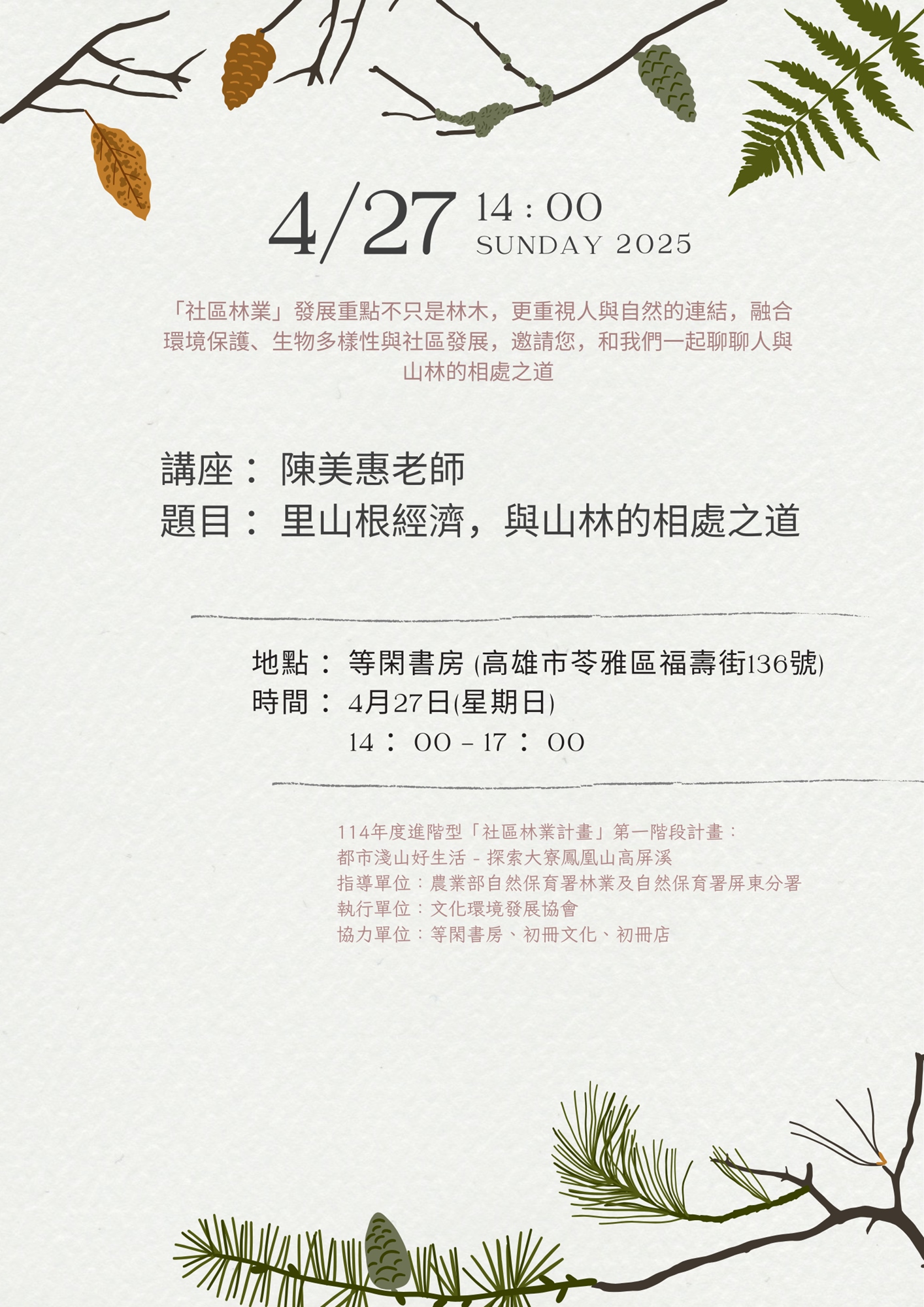 「社區林業」發展重點不只是林木,更重視人與自然的連結,融合環境保護、生物多樣性與社區發展,邀請您,和我們一起聊聊人與山林的相處之道。