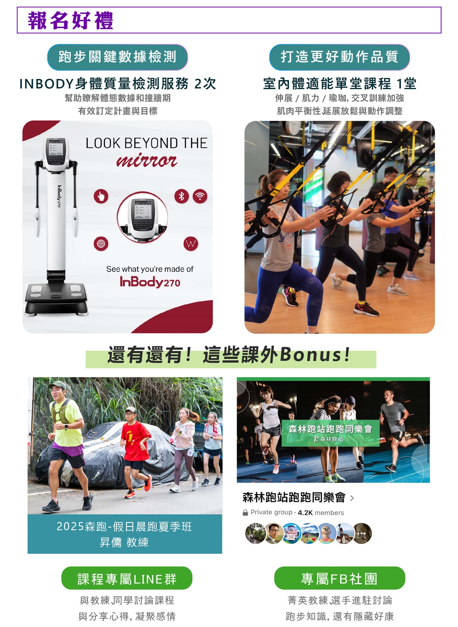 報名加贈:INBODY檢測服務2次、室內體適能課程1堂