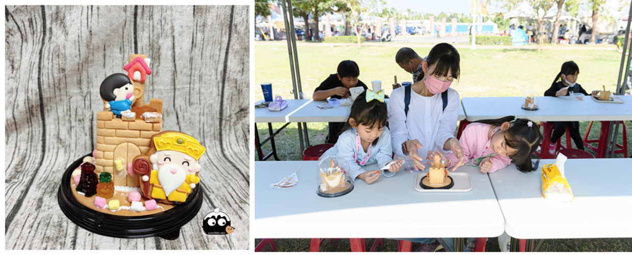 尖炮城是傳統客家庄元宵節辦理的特色競技活動,此次透過薑餅屋的概念,讓小朋友組裝尖炮城的餅乾,並在老師的解說下,更了解這獨特的客家文化。