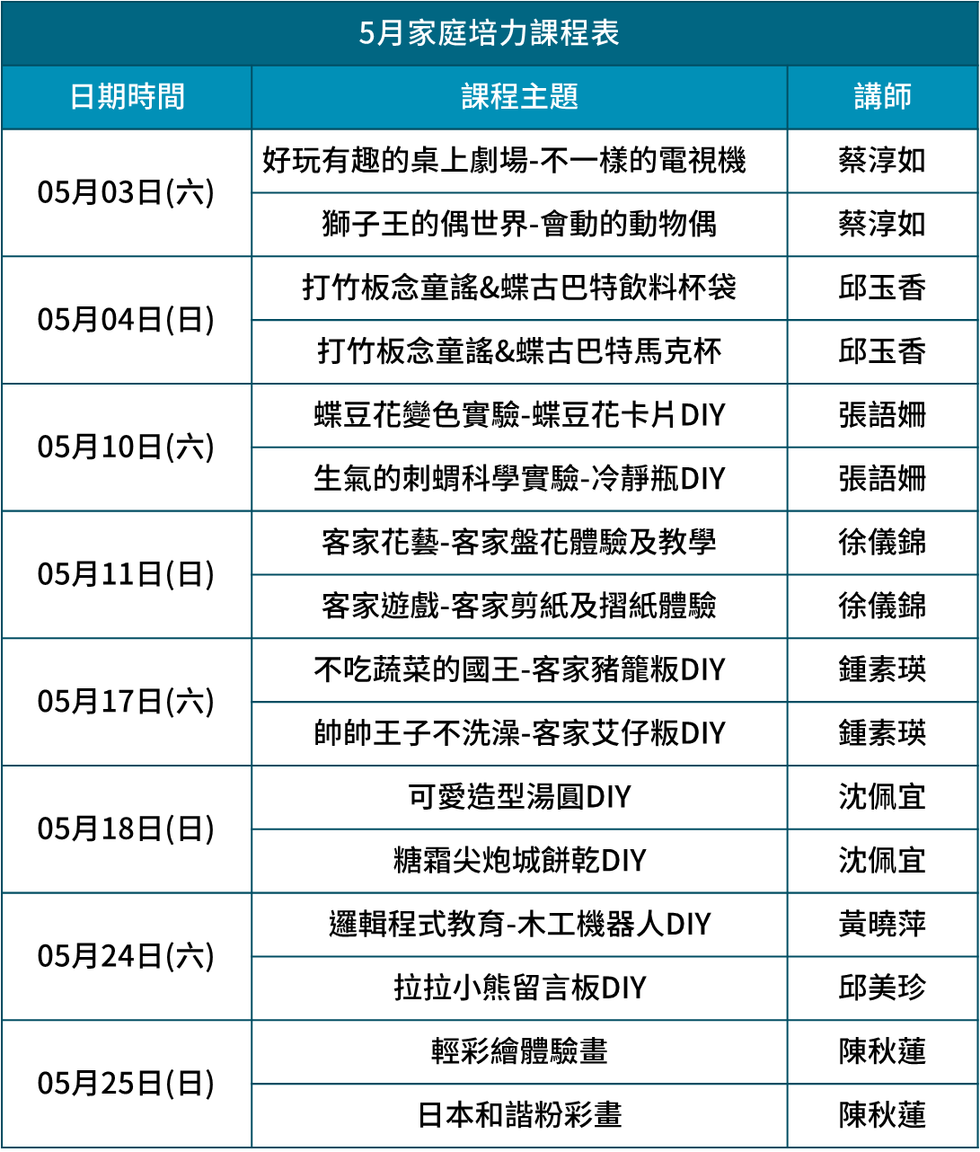 五月份客語家庭培力課程開張啦!! 這次內容豐富,上下午場都能同時報名~非常趣味的親子體驗,讓家長能和小朋友一起共同學習玩樂,希望大家能踴躍報名給我們鼓勵,我們會再開出更多有趣的課程,讓大家一起玩樂共學!