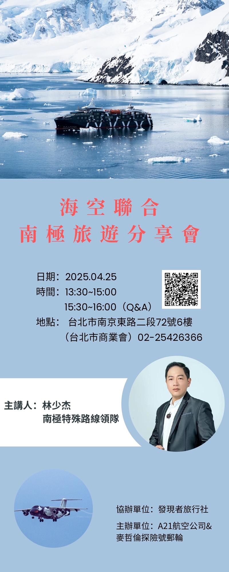 無論您是對南極充滿好奇的新手,或是渴望以全新方式重返南極的旅者,這都是一場不容錯過的精彩分享!