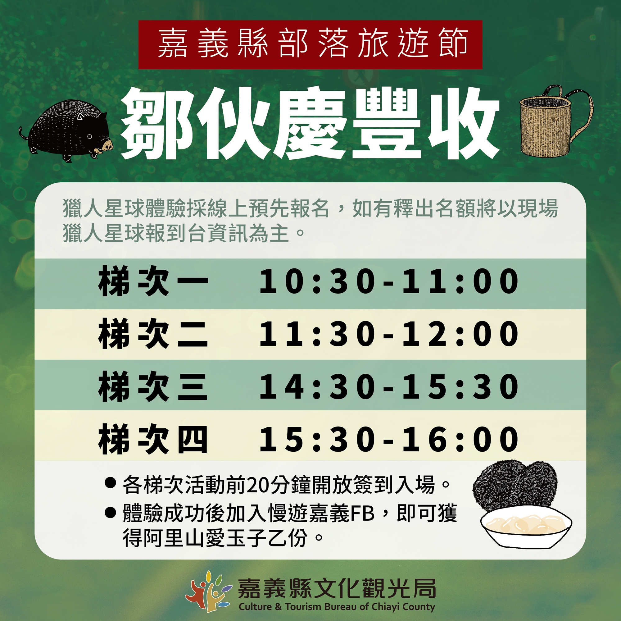 ❗️報名表單中蒐集的個人資訊僅於「嘉義縣部落旅遊節-獵人星球」活動中使用,請放心進行填寫。
