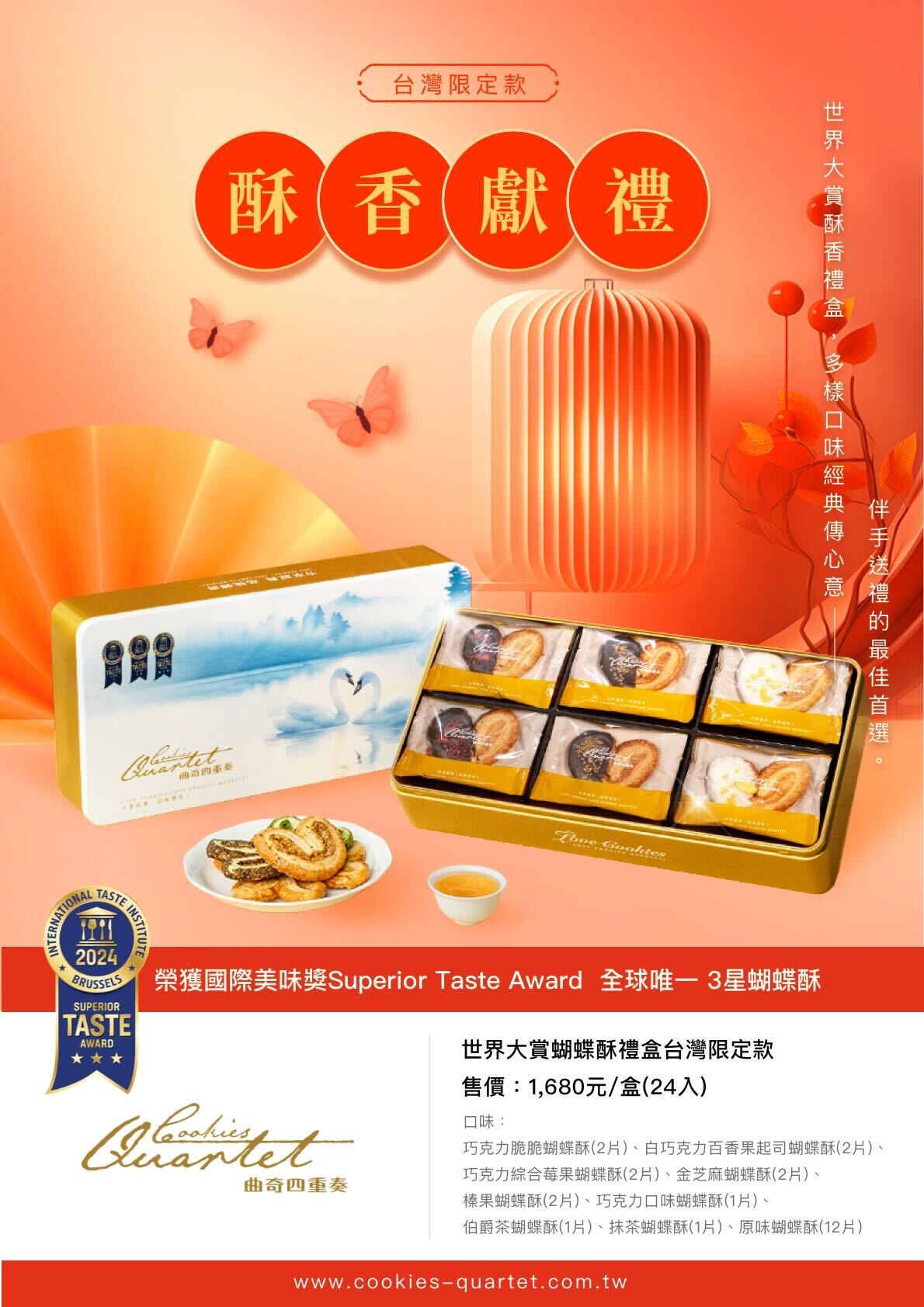 (1)世界大賞蝴蝶酥禮盒台灣限定款 (24片 $1,680 元)