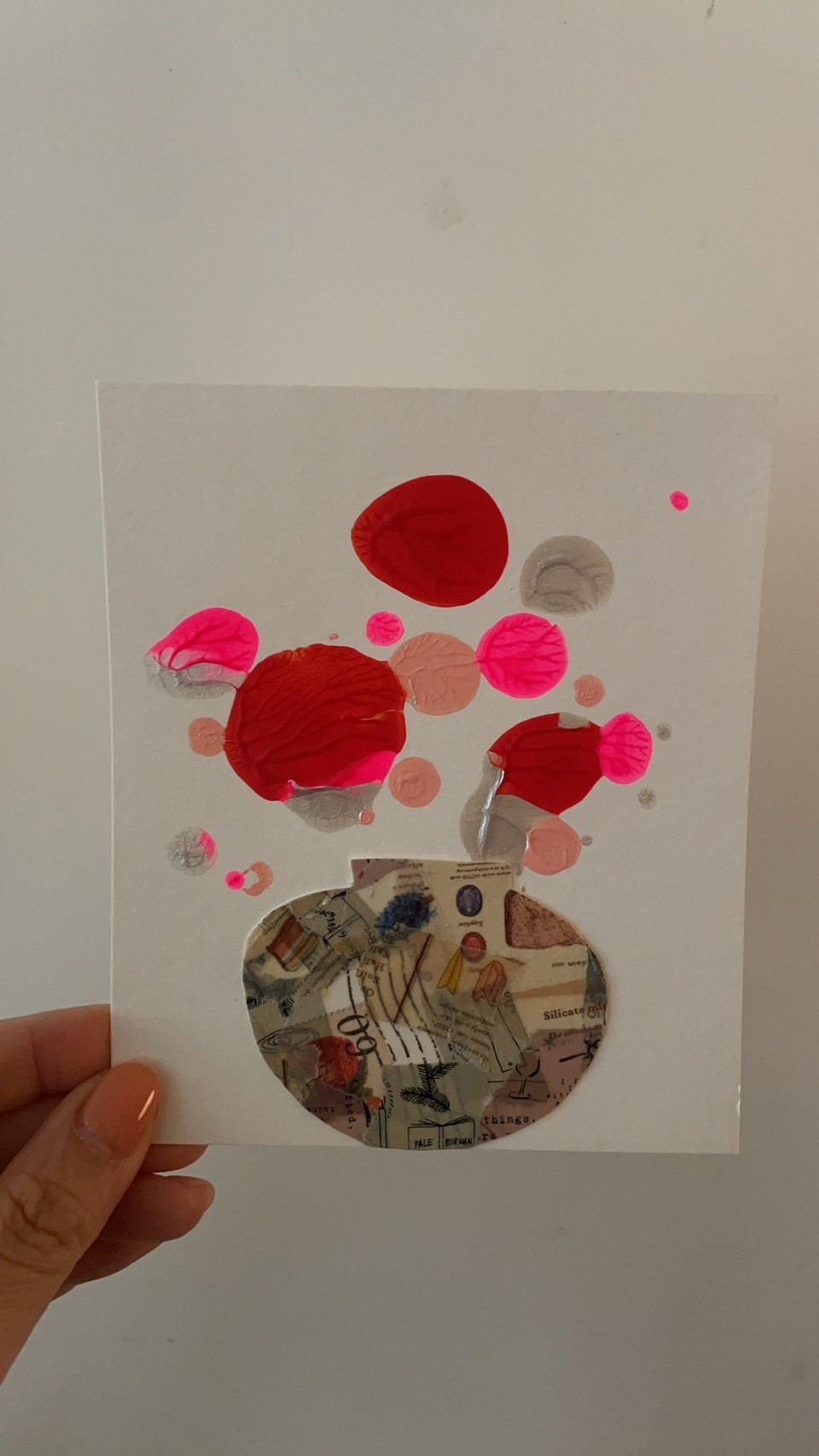 用壓克力隨意點上喜歡的顏色,用鏡射的方式,蓋印出彩色卡片
