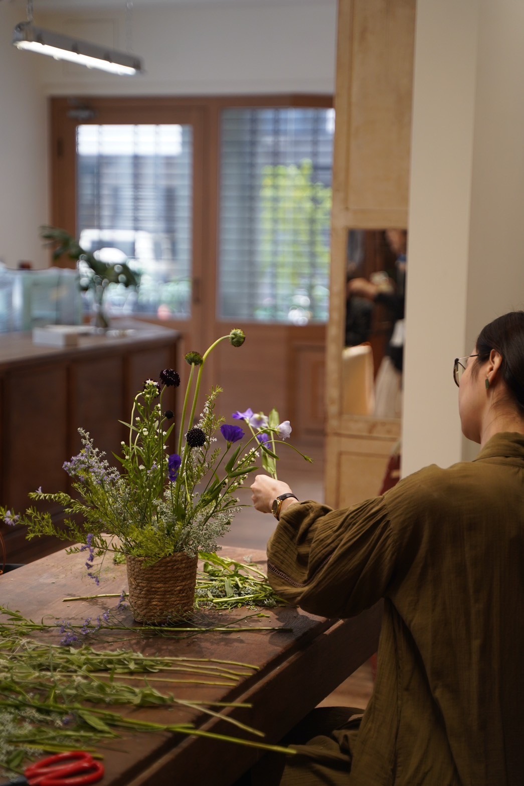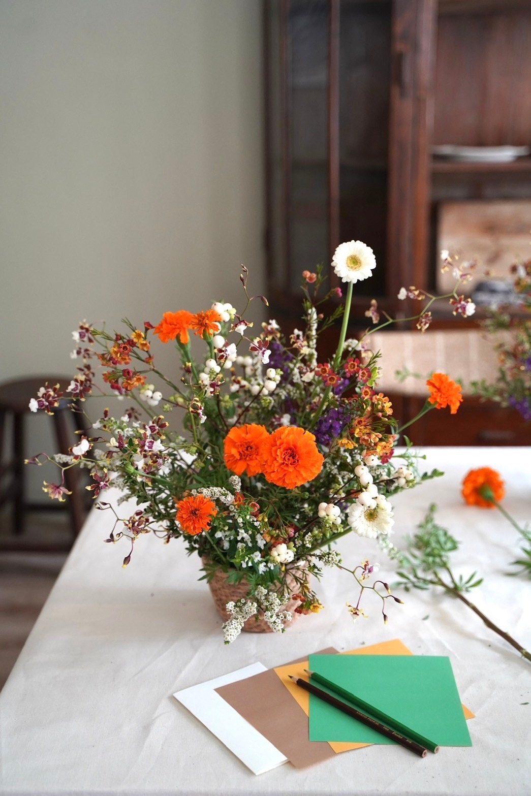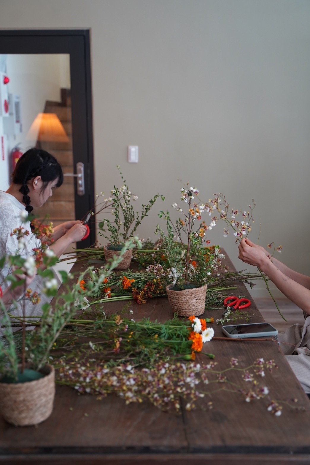 整理花材、插花技巧示範、花藝創作時間(附15公分左右小籃子)