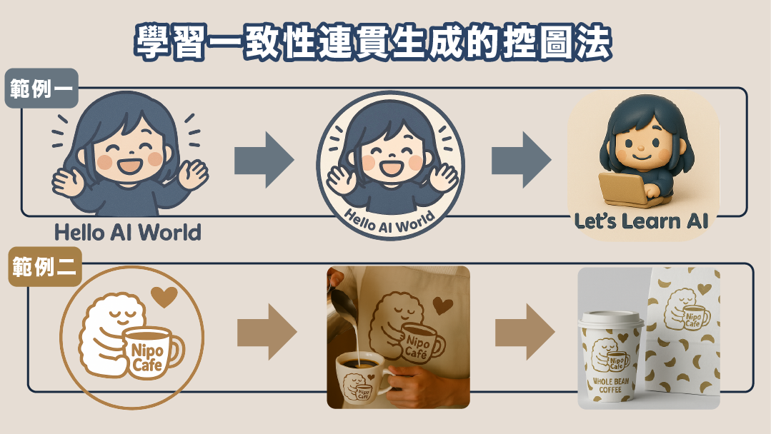 - 掌握「混圖、控圖、改圖、連續生成」的圖像一致性技巧